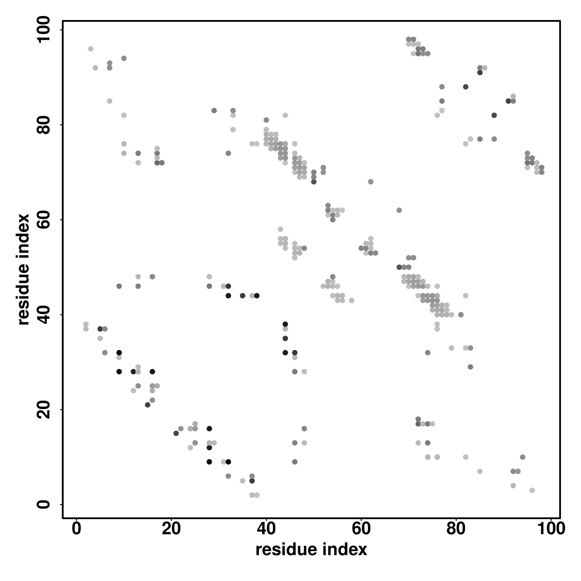 For the contact map, each dot represents a residue pair with predicted contact,