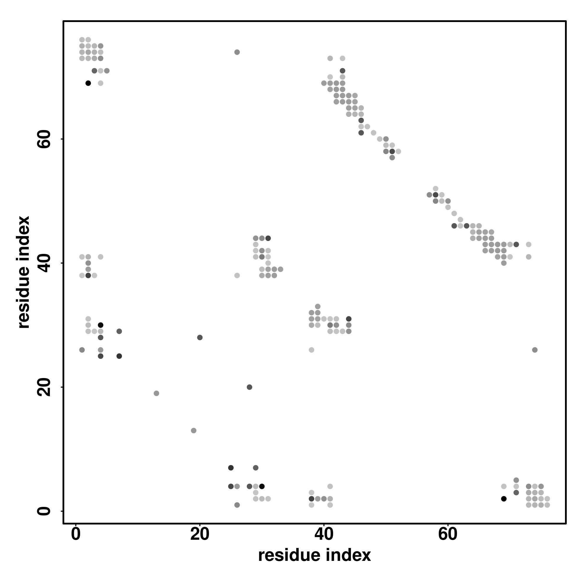 For the contact map, each dot represents a residue pair with predicted contact,