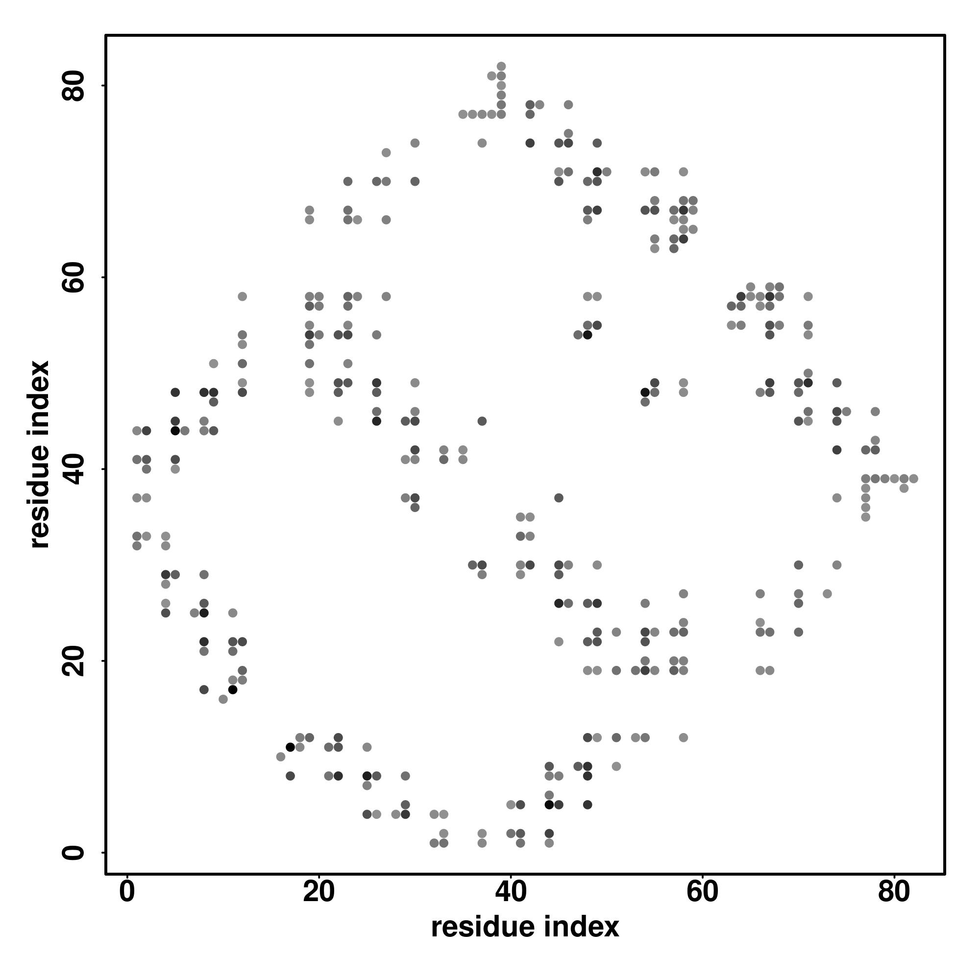 For the contact map, each dot represents a residue pair with predicted contact,