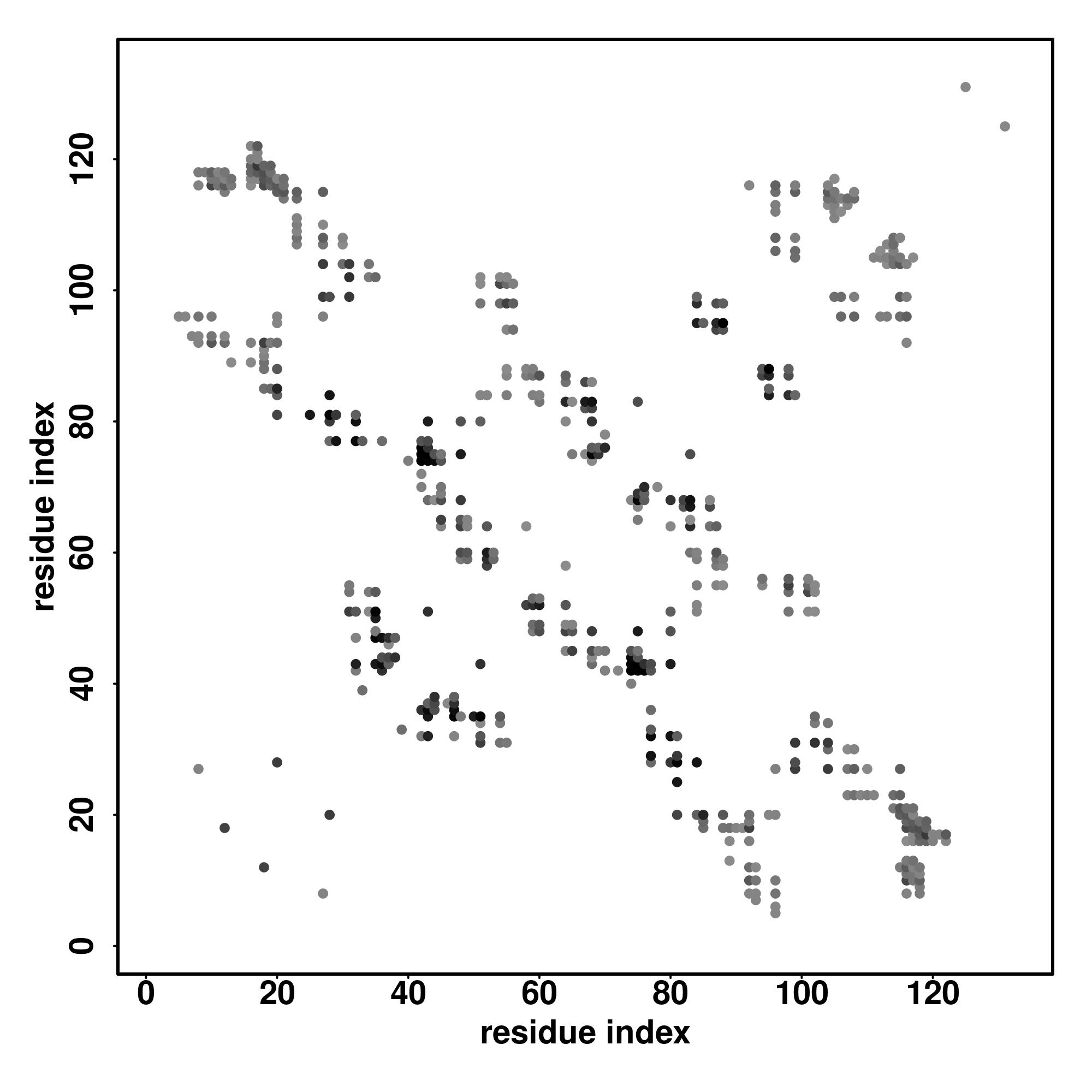 For the contact map, each dot represents a residue pair with predicted contact,