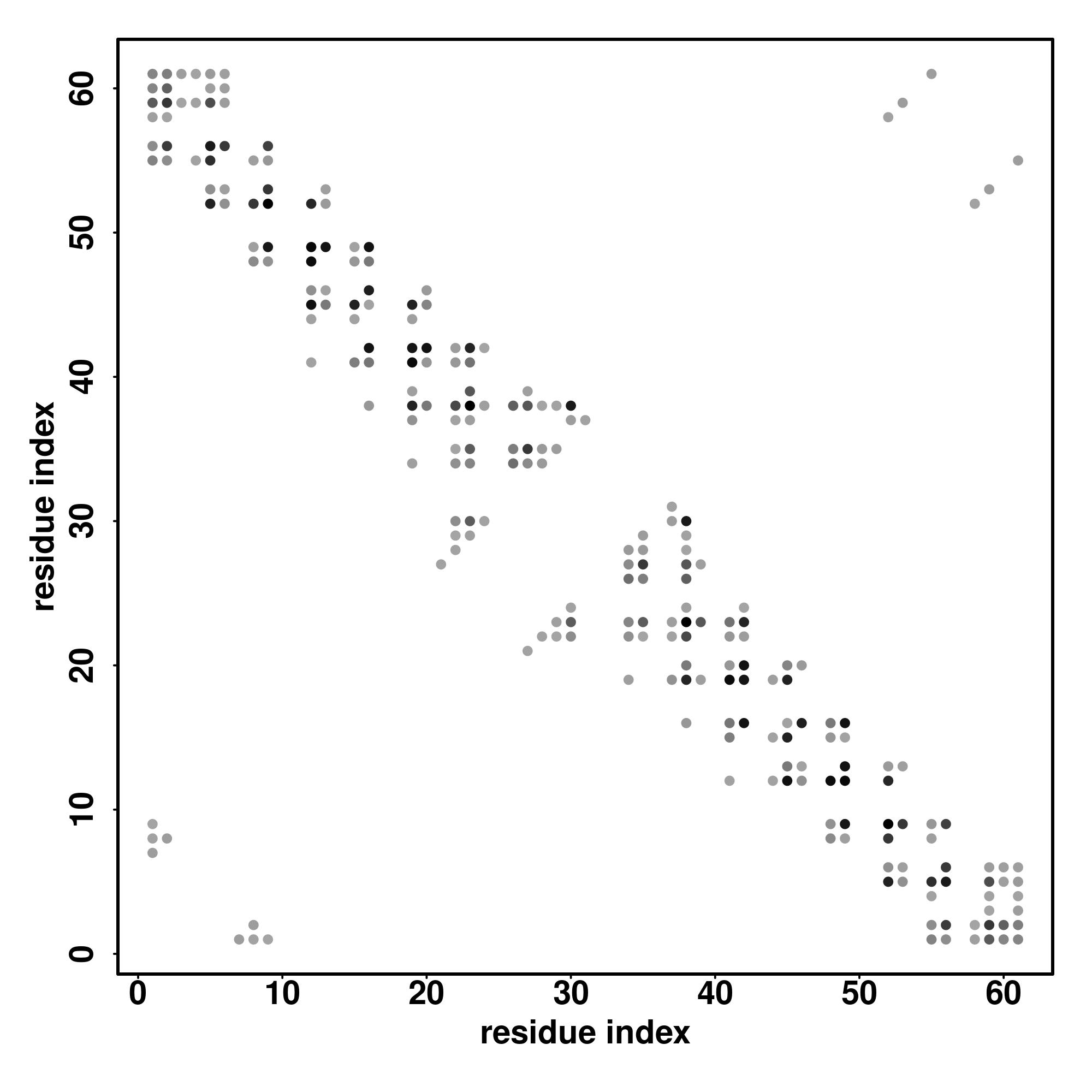 For the contact map, each dot represents a residue pair with predicted contact,