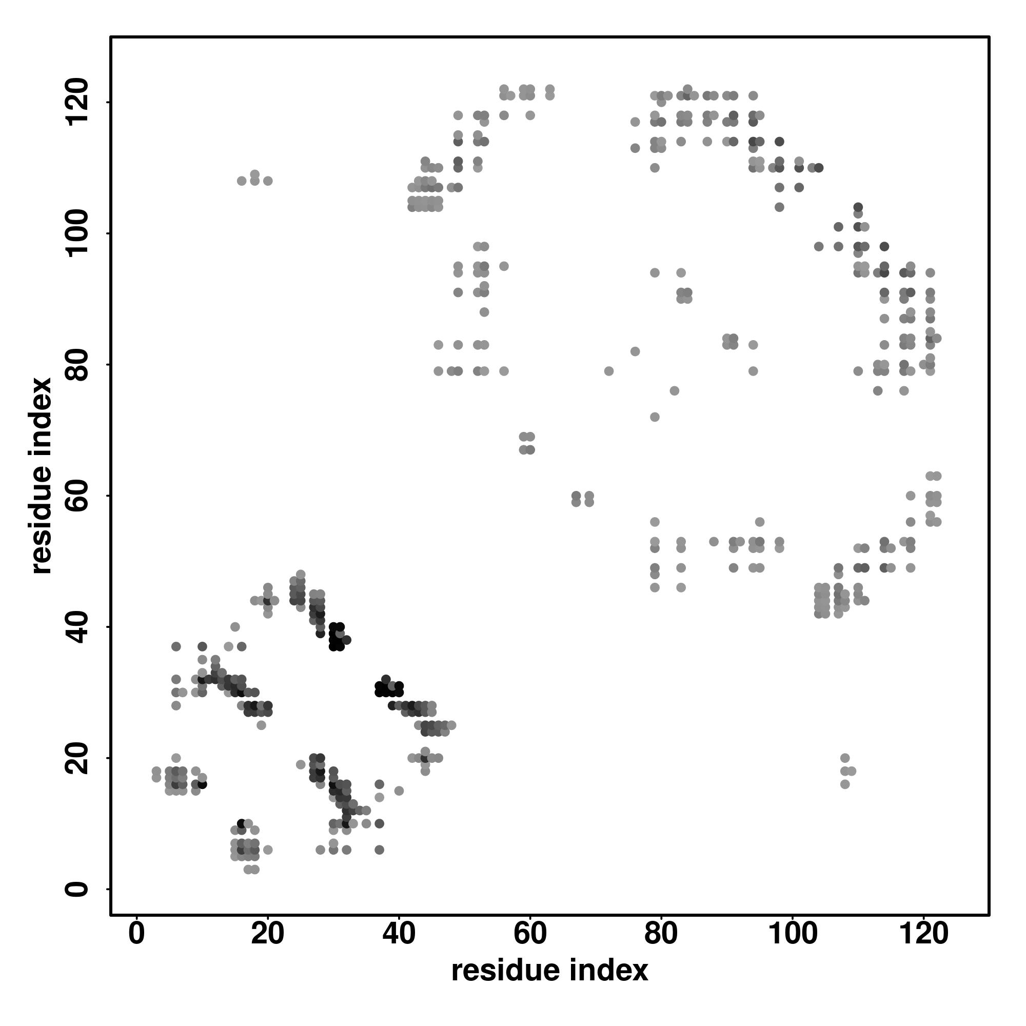 For the contact map, each dot represents a residue pair with predicted contact,