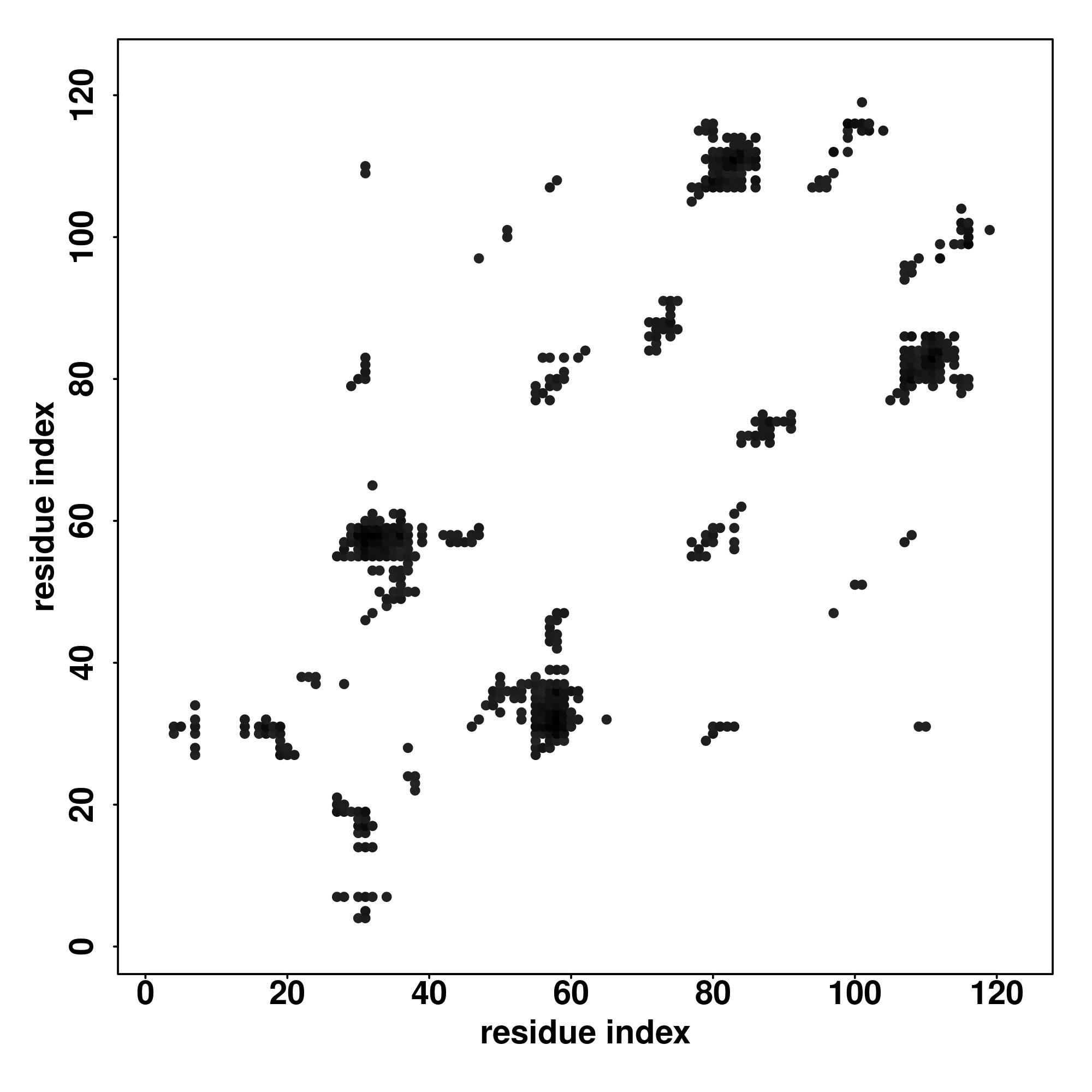 For the contact map, each dot represents a residue pair with predicted contact,