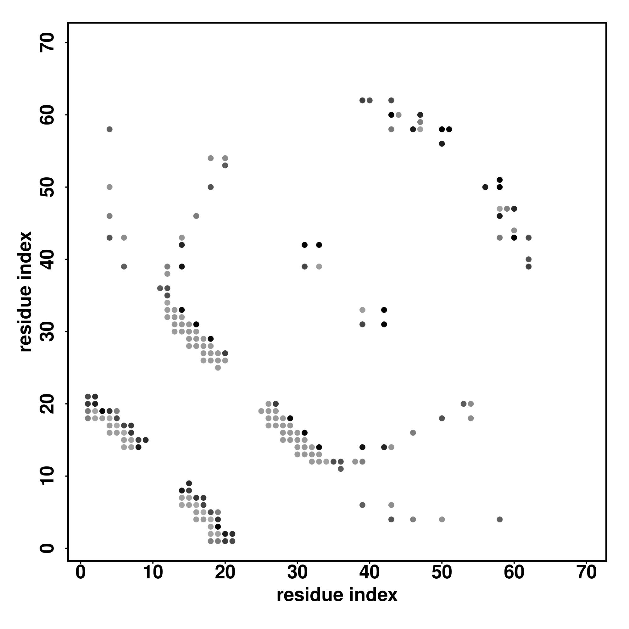 For the contact map, each dot represents a residue pair with predicted contact,