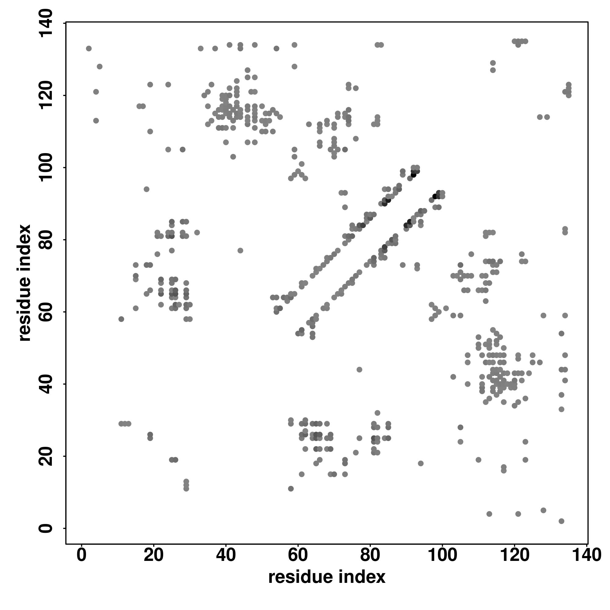 For the contact map, each dot represents a residue pair with predicted contact,