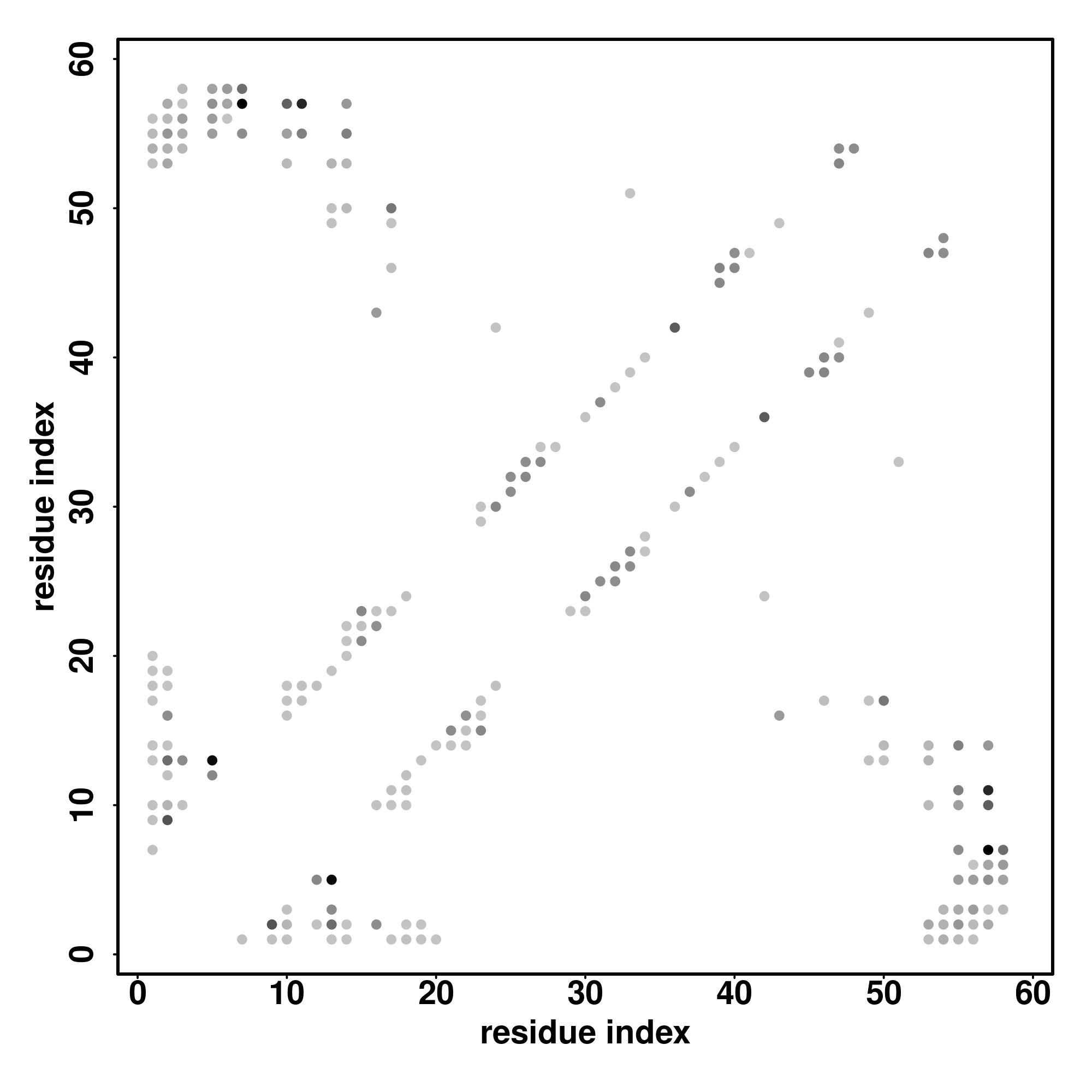 For the contact map, each dot represents a residue pair with predicted contact,