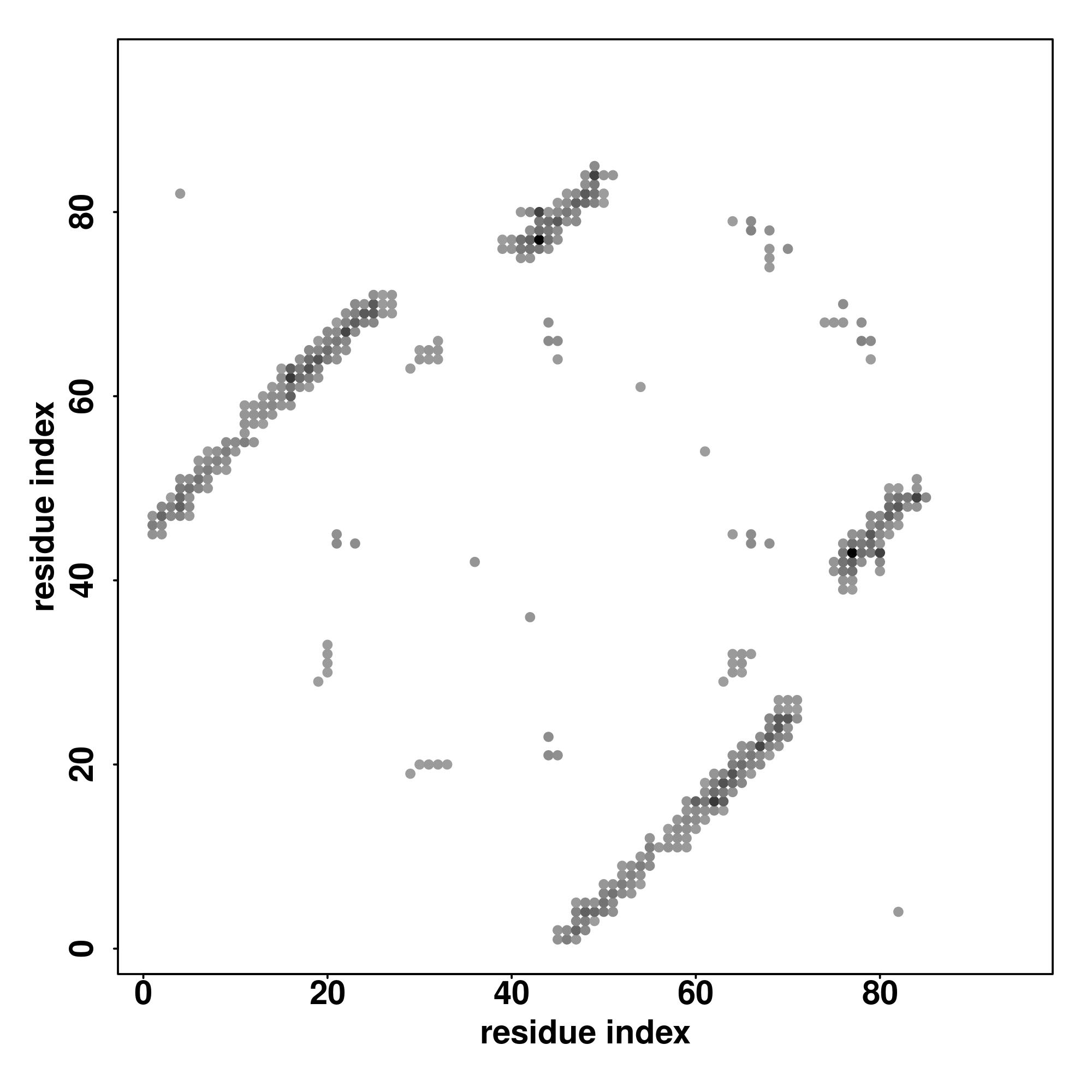 For the contact map, each dot represents a residue pair with predicted contact,