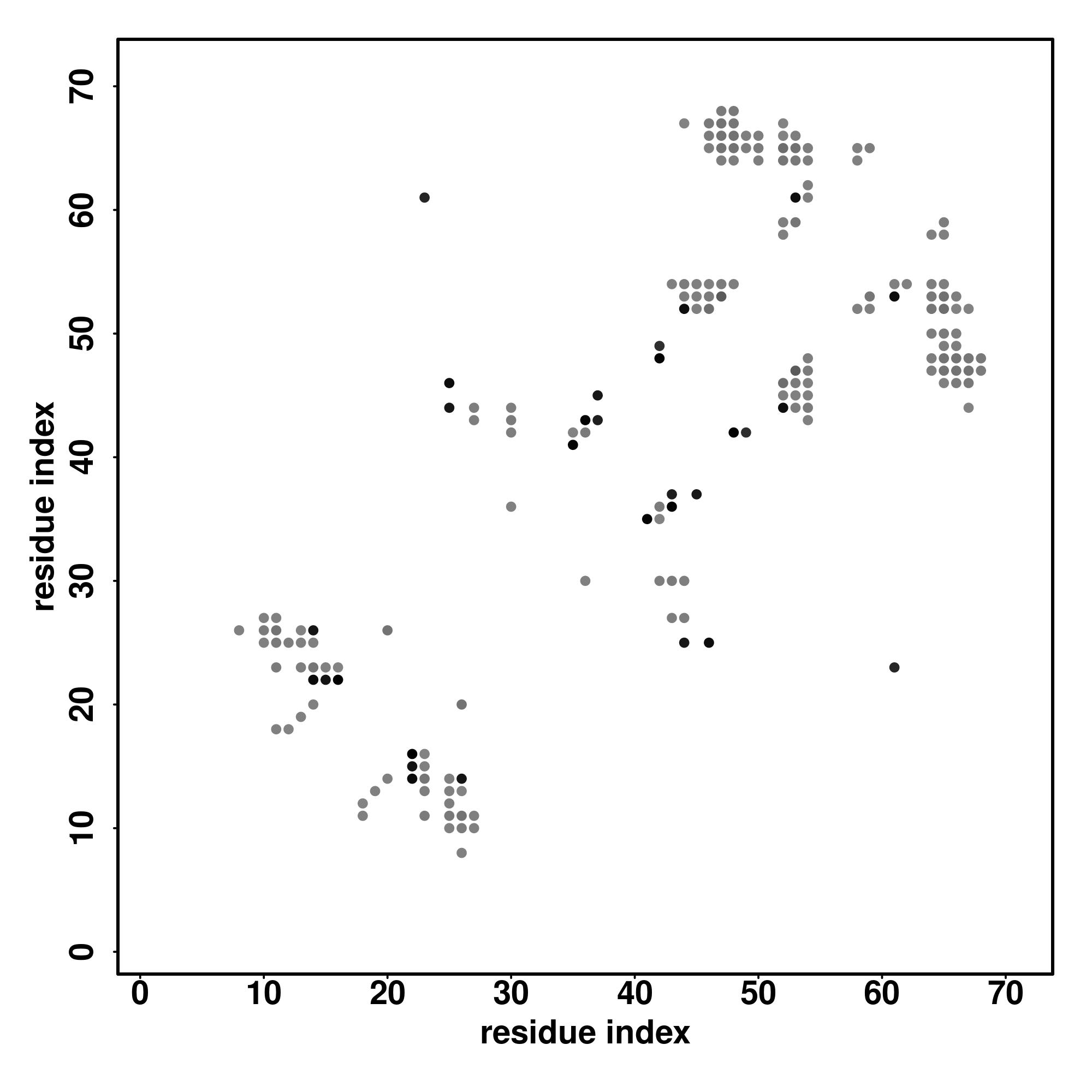 For the contact map, each dot represents a residue pair with predicted contact,