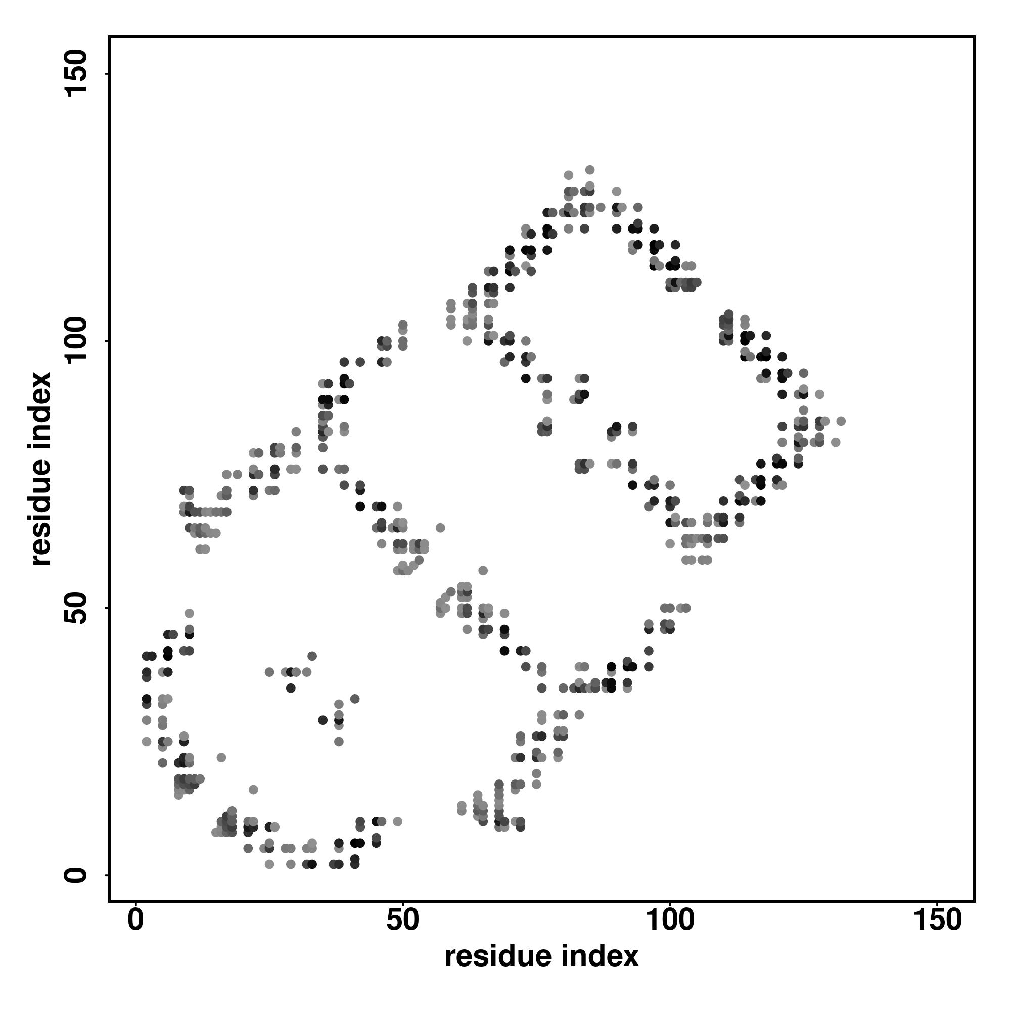 For the contact map, each dot represents a residue pair with predicted contact,