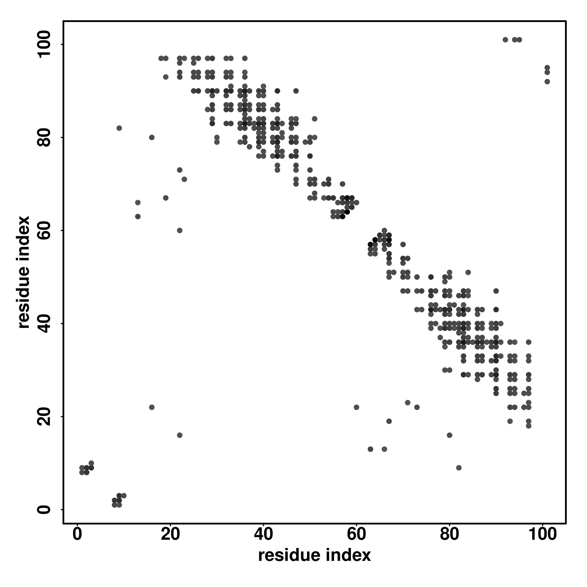 For the contact map, each dot represents a residue pair with predicted contact,