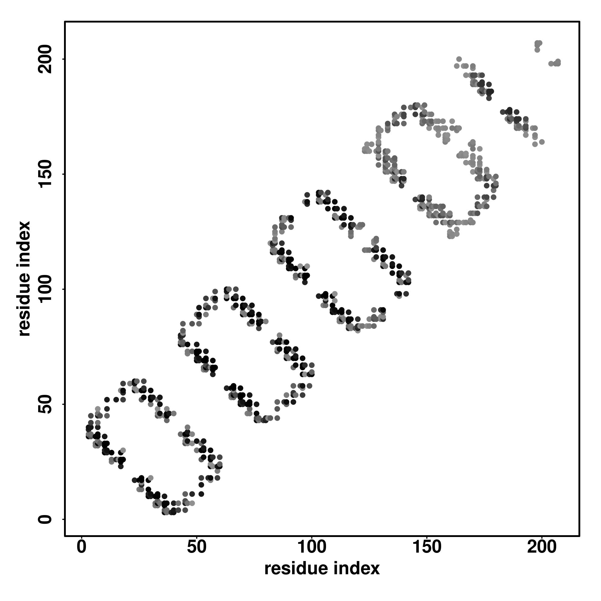 | Values range from 0 (buried residue) to 8 (highly exposed residue) | |