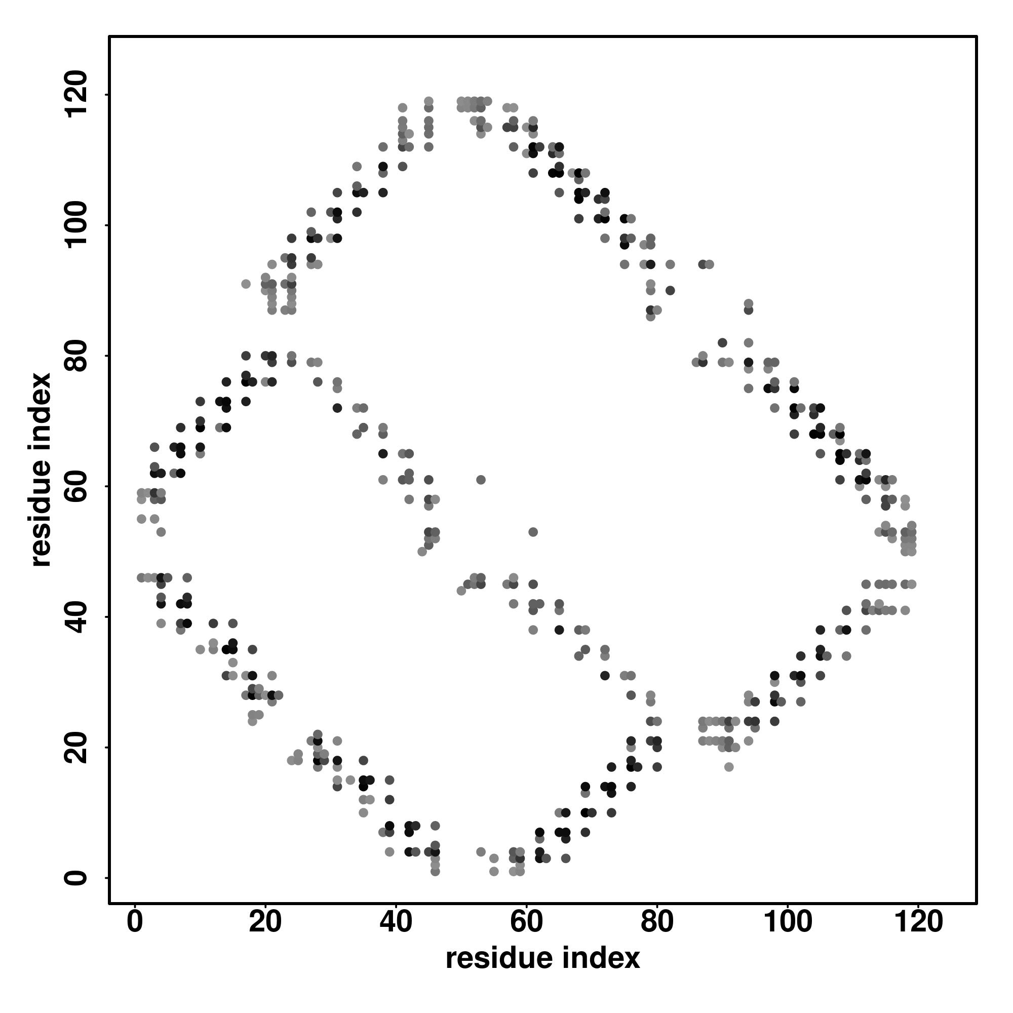 For the contact map, each dot represents a residue pair with predicted contact,