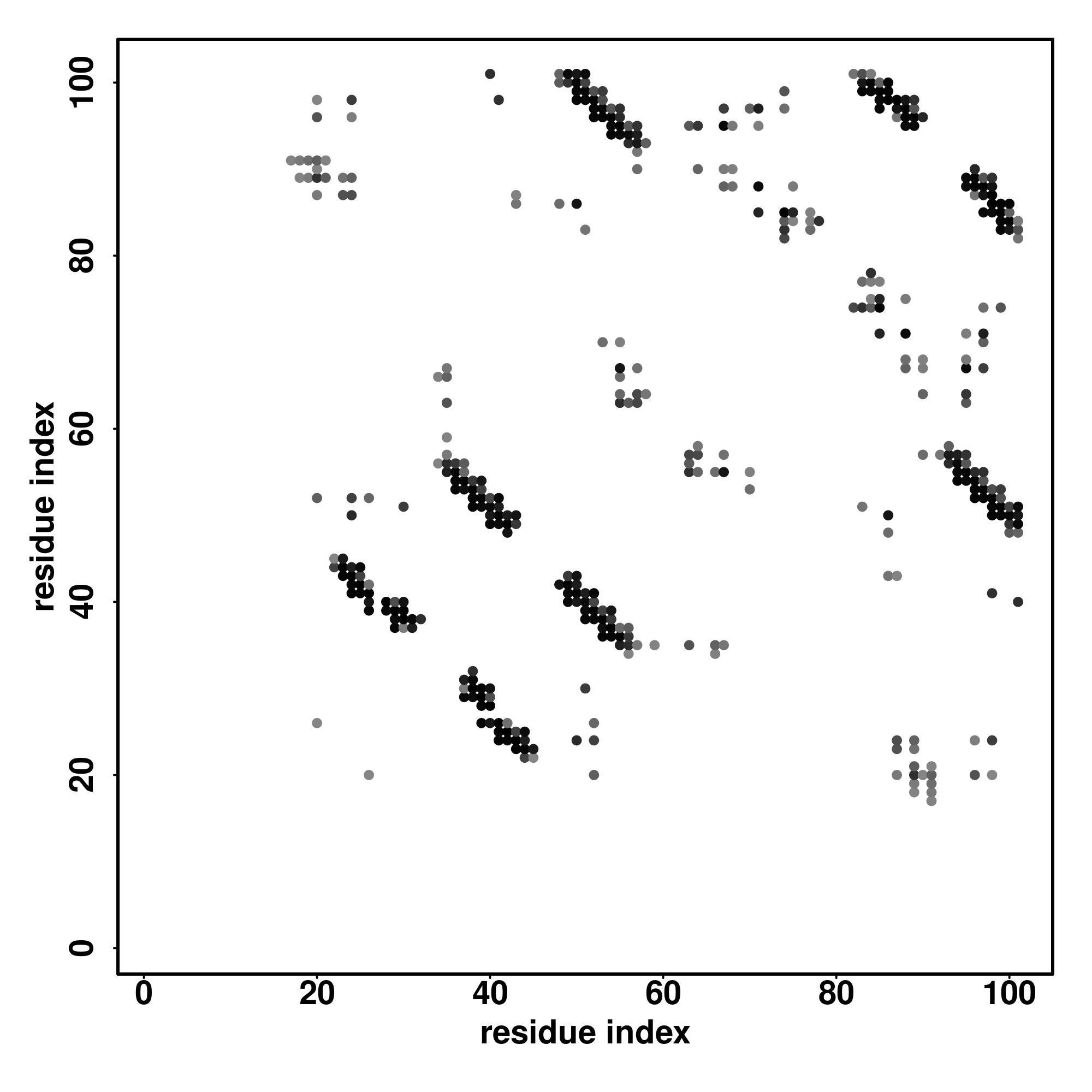 For the contact map, each dot represents a residue pair with predicted contact,