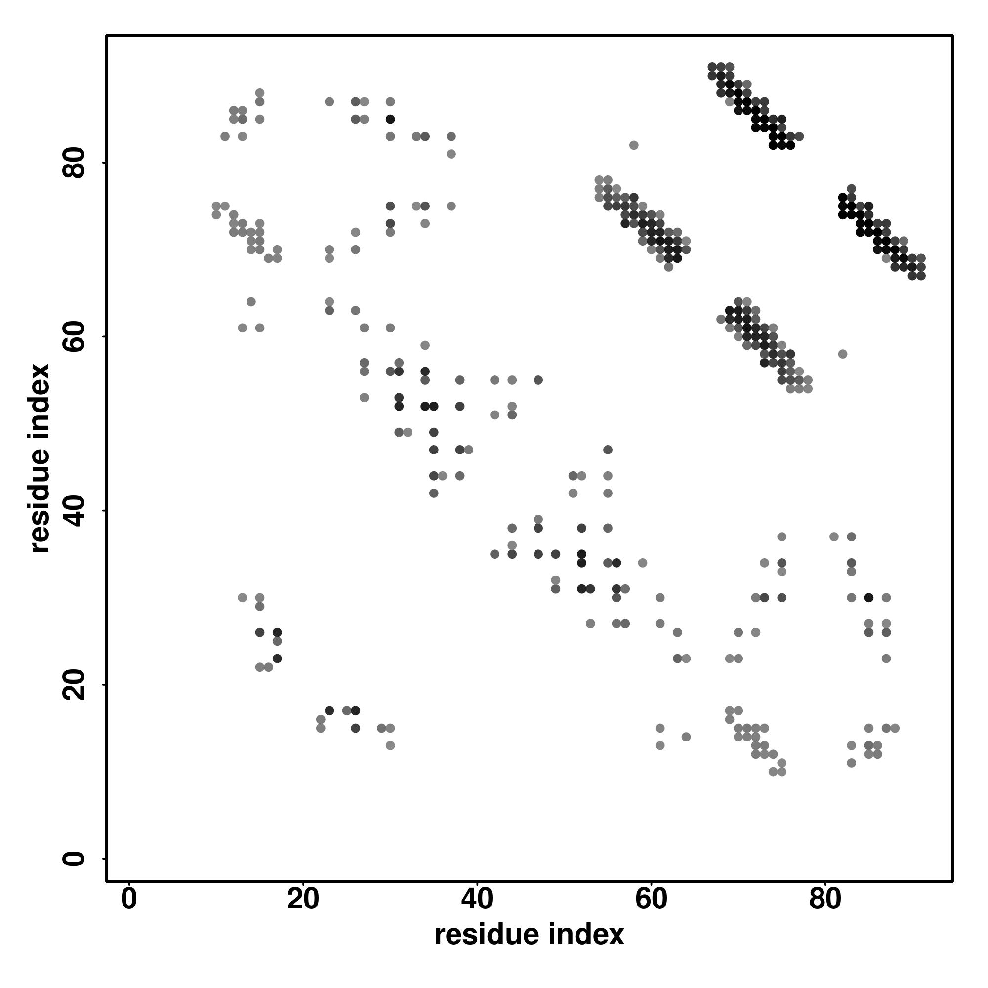For the contact map, each dot represents a residue pair with predicted contact,