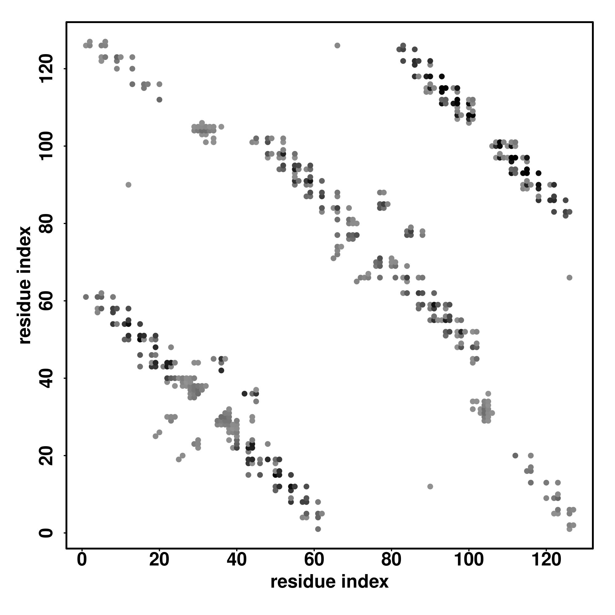For the contact map, each dot represents a residue pair with predicted contact,