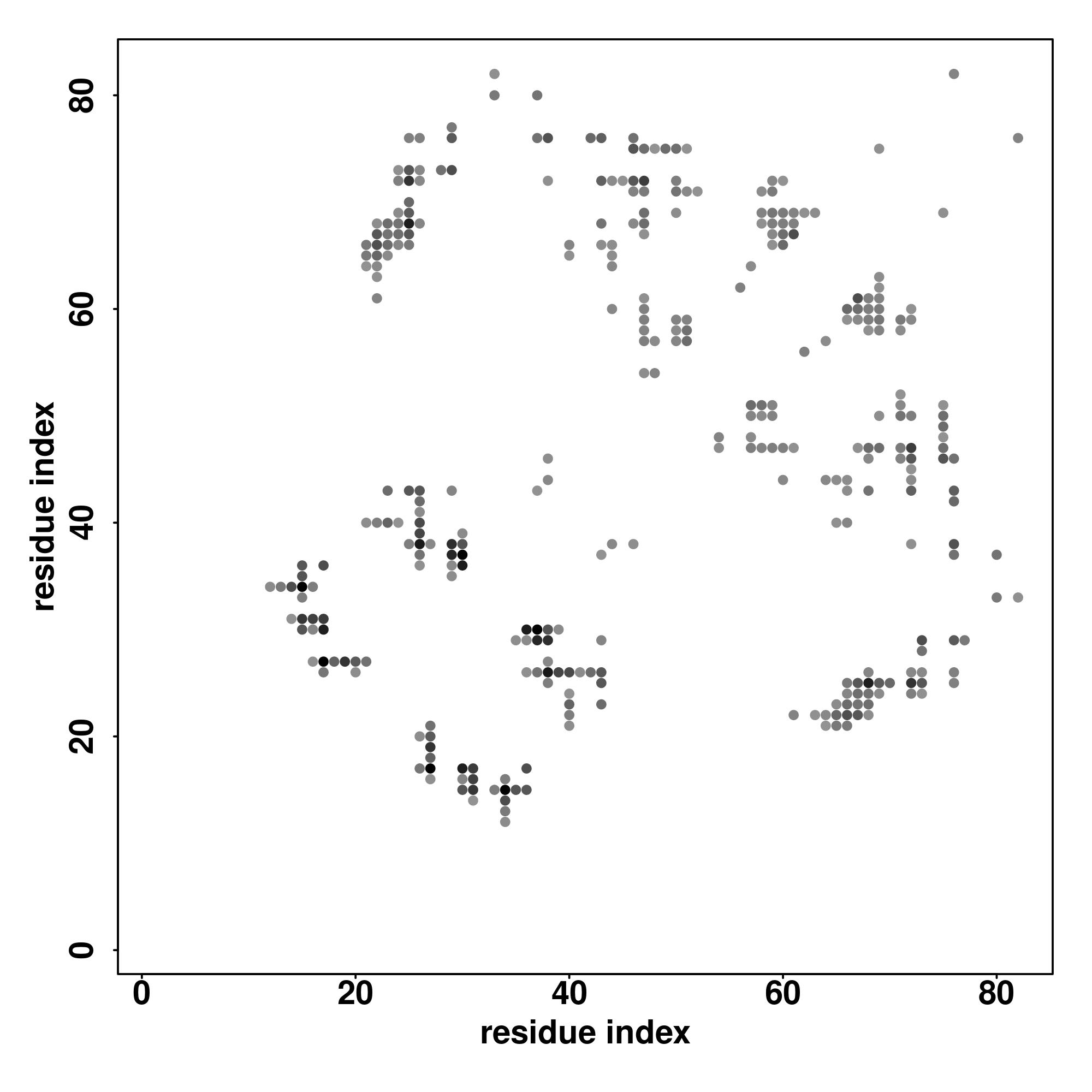 For the contact map, each dot represents a residue pair with predicted contact,