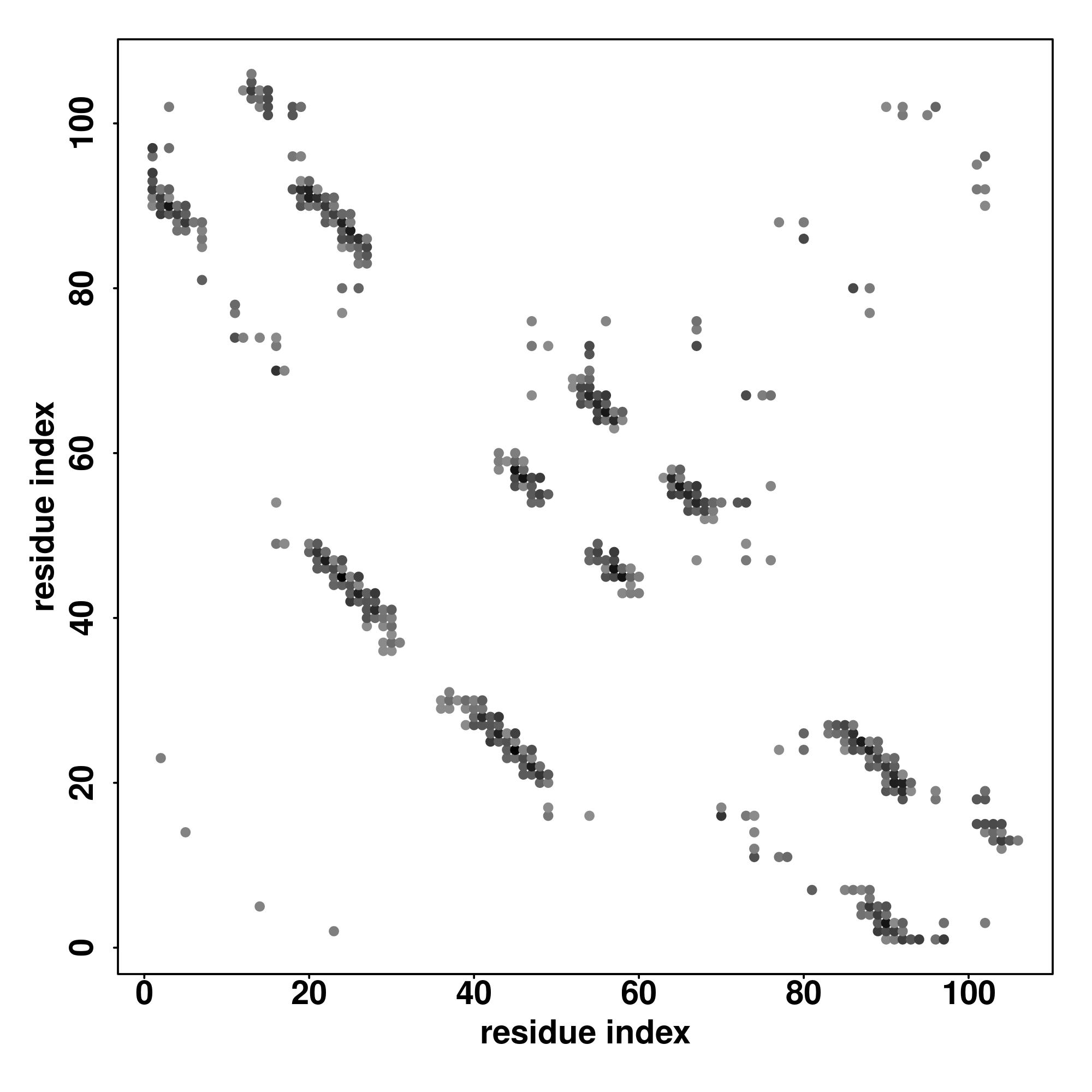 For the contact map, each dot represents a residue pair with predicted contact,