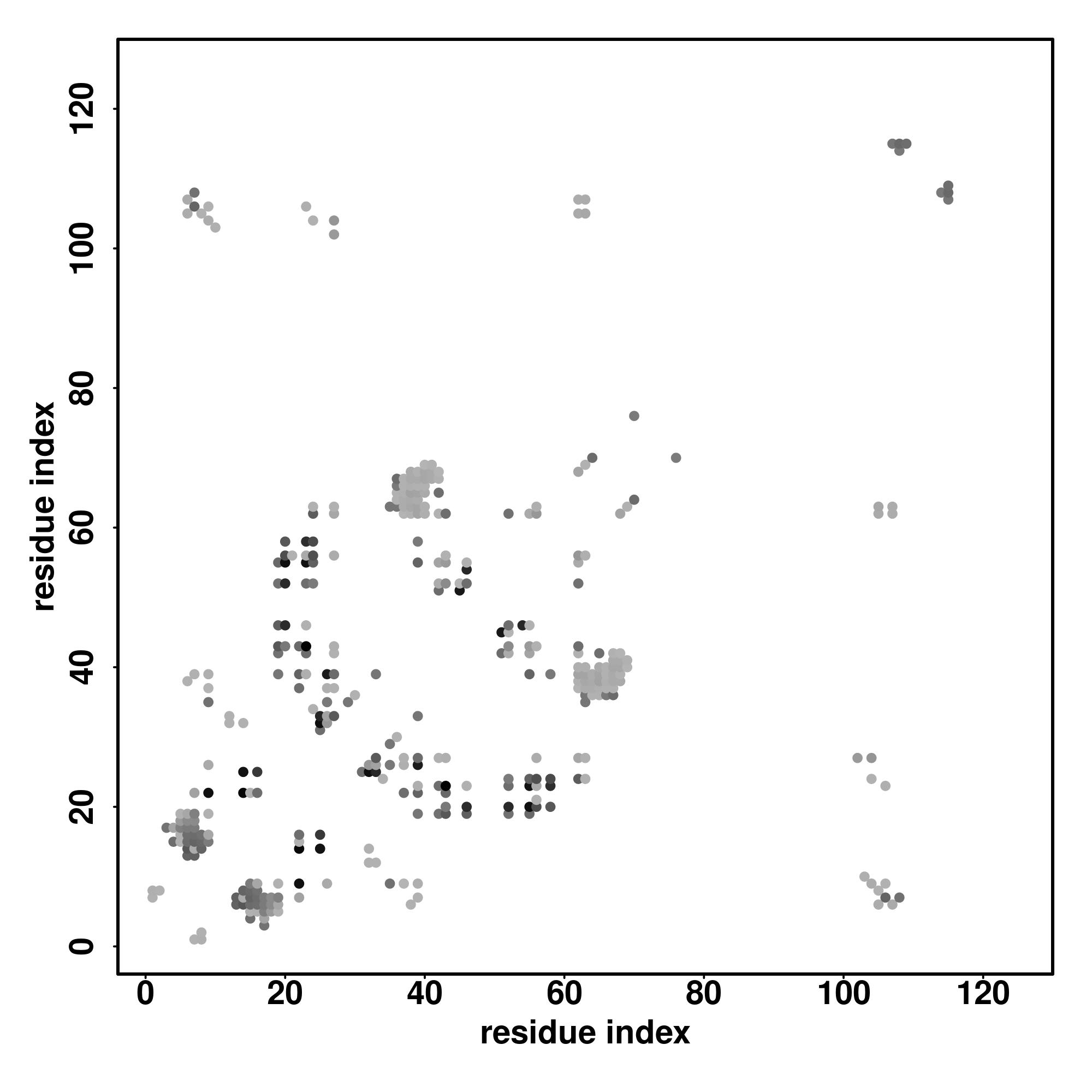 For the contact map, each dot represents a residue pair with predicted contact,