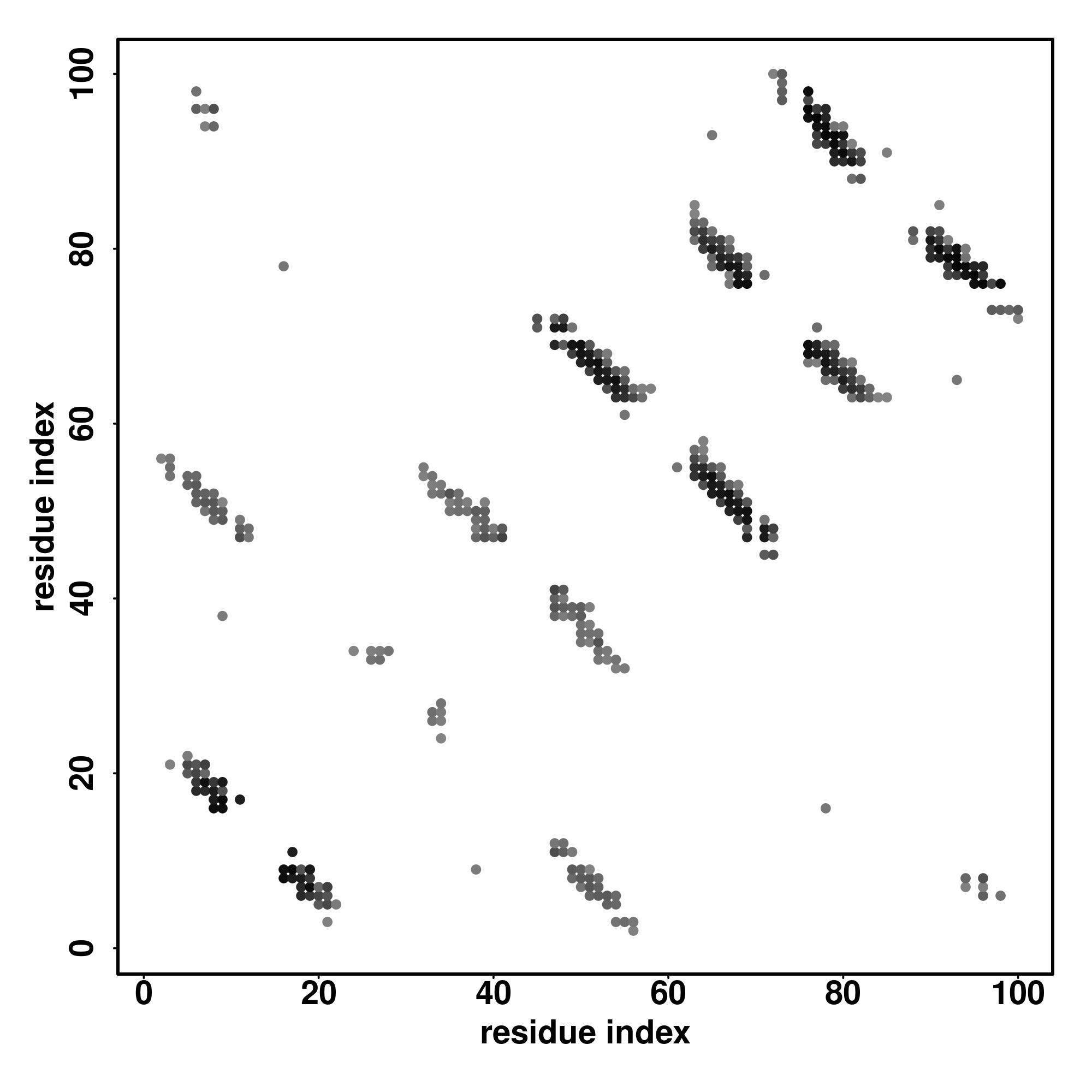 For the contact map, each dot represents a residue pair with predicted contact,