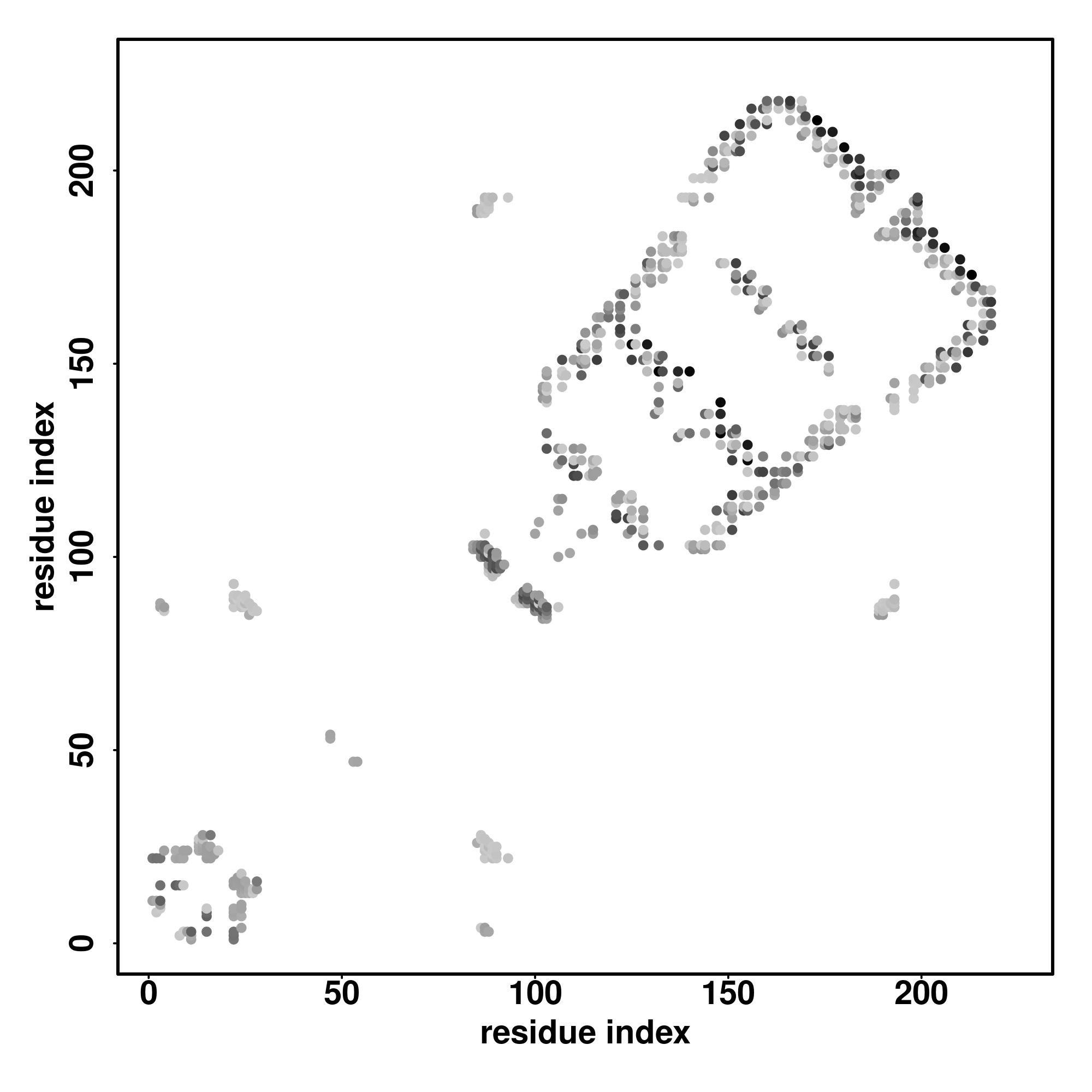| Values range from 0 (buried residue) to 8 (highly exposed residue) | |