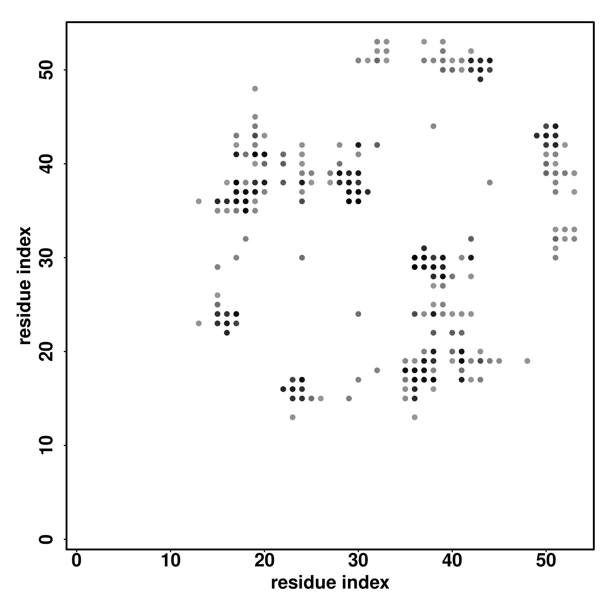 For the contact map, each dot represents a residue pair with predicted contact,