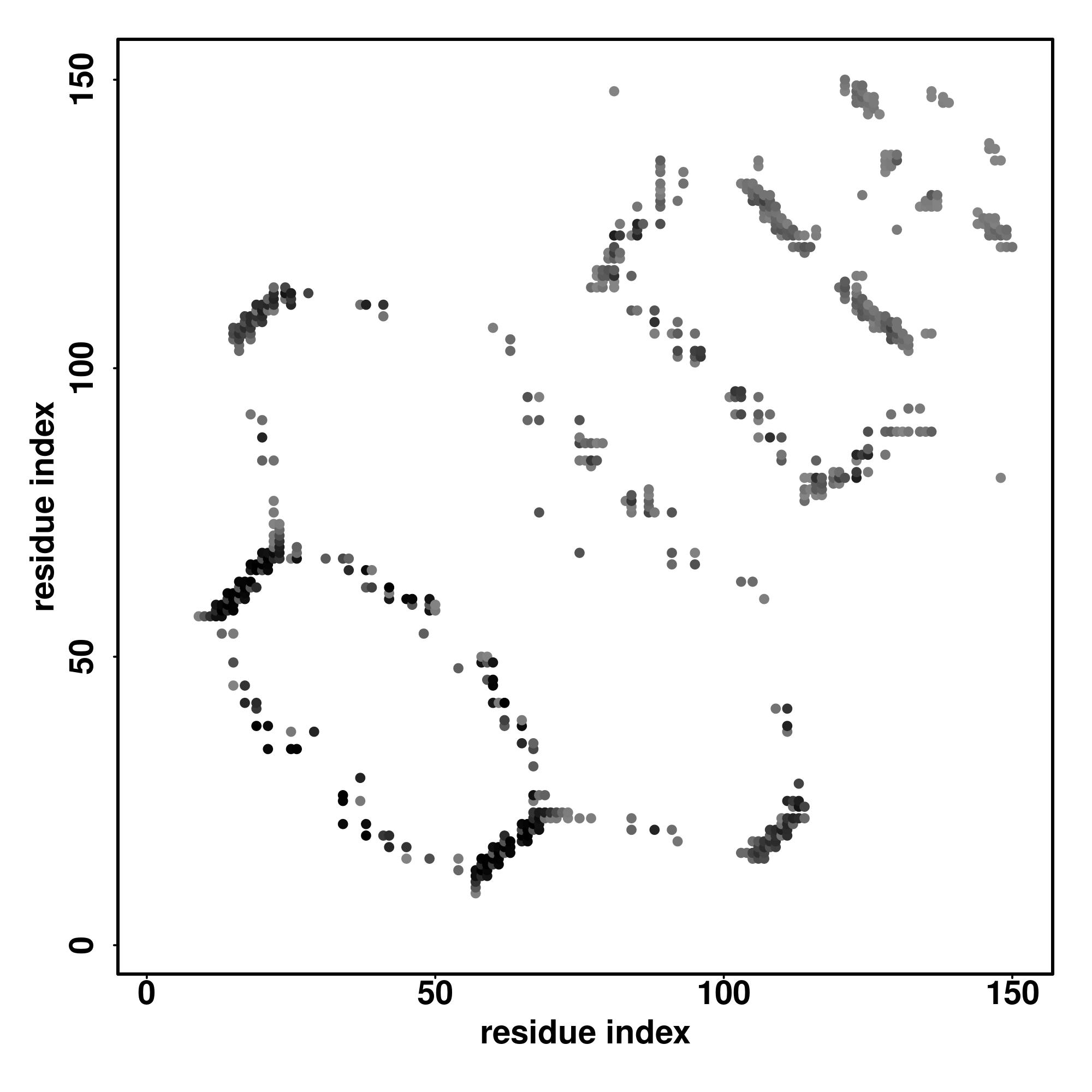 For the contact map, each dot represents a residue pair with predicted contact,