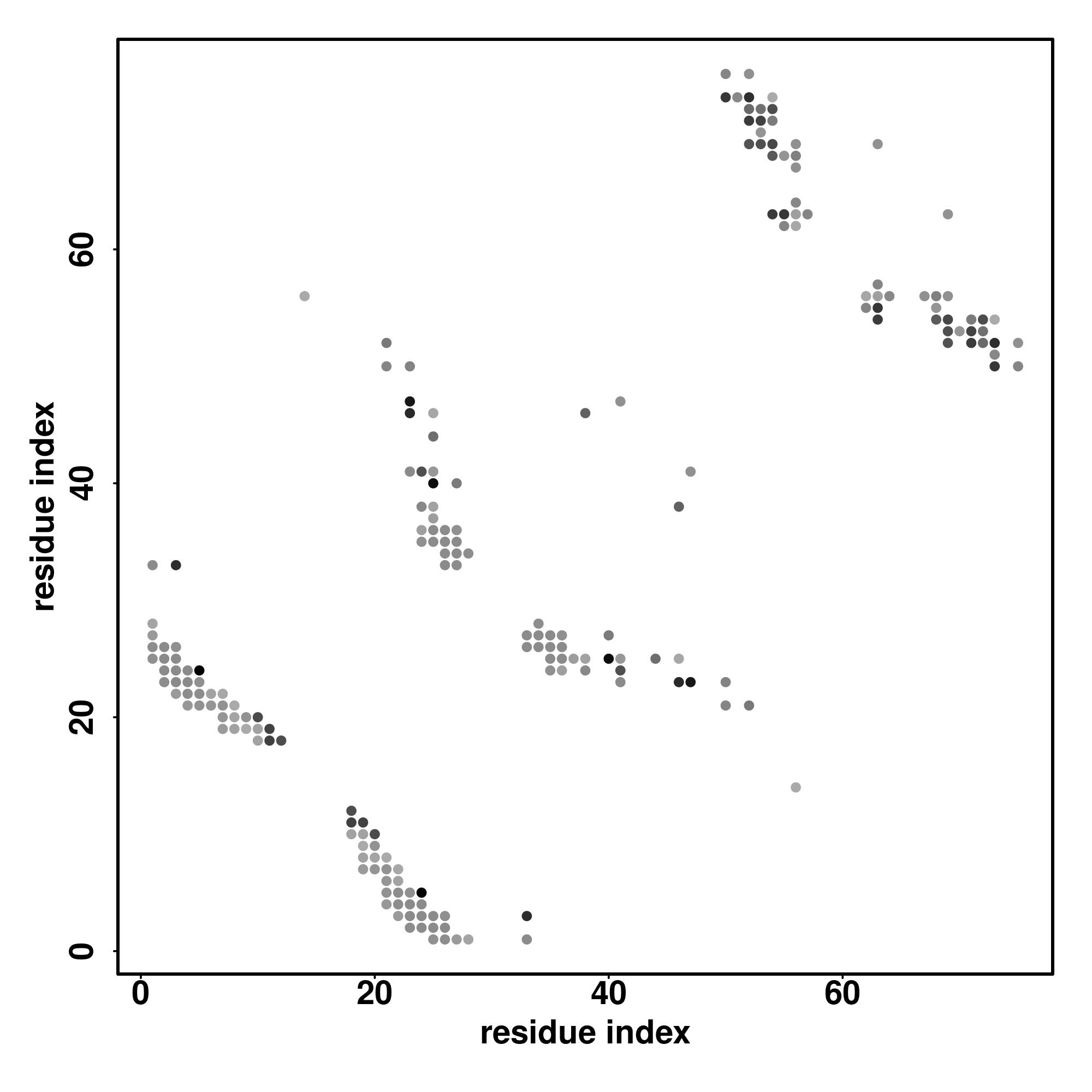 For the contact map, each dot represents a residue pair with predicted contact,