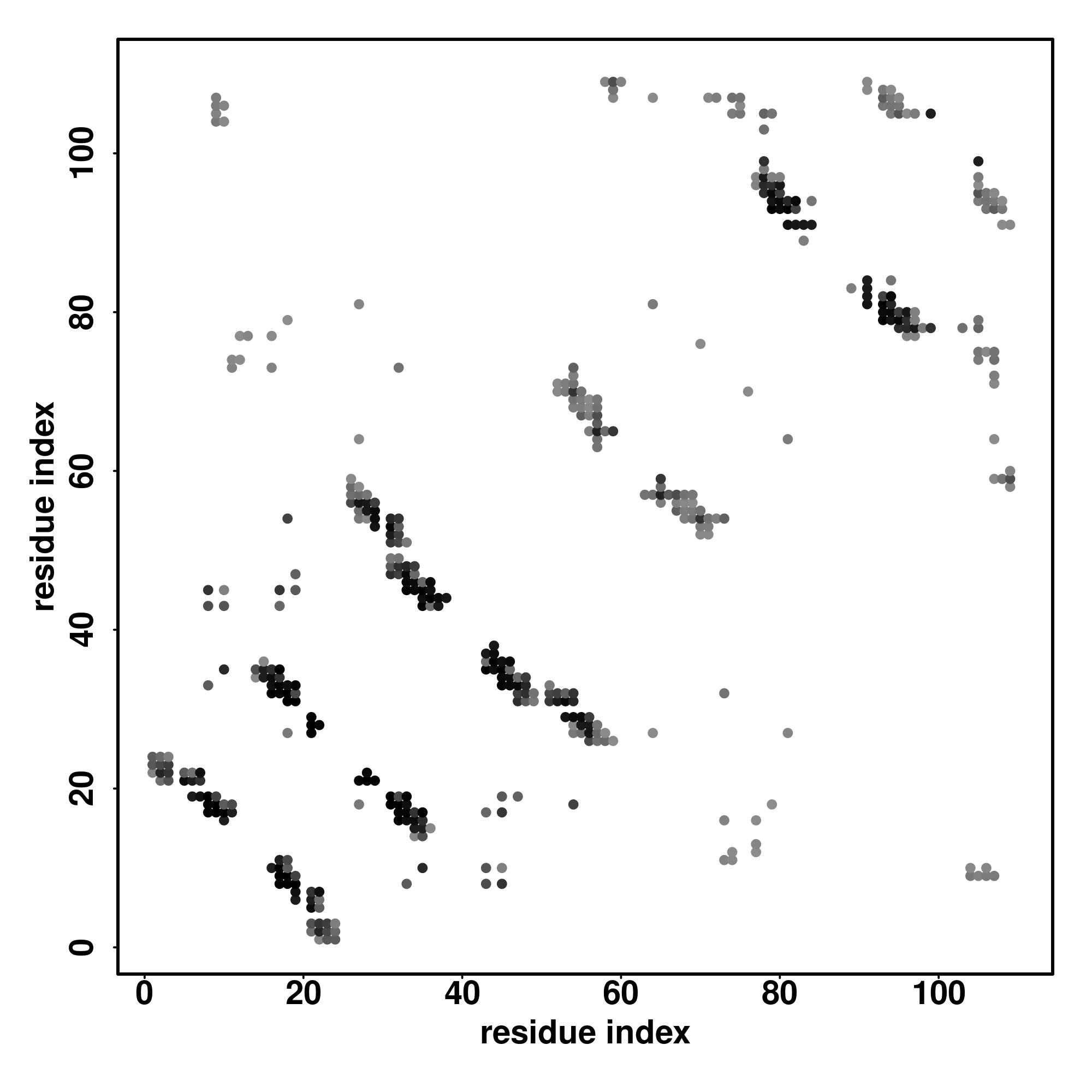For the contact map, each dot represents a residue pair with predicted contact,
