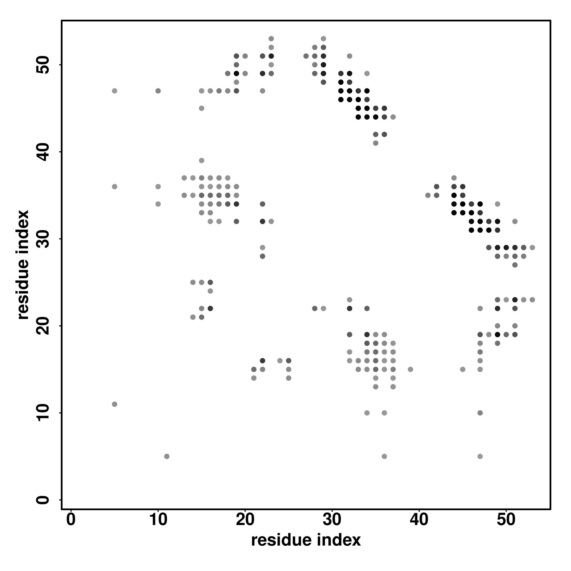 For the contact map, each dot represents a residue pair with predicted contact,