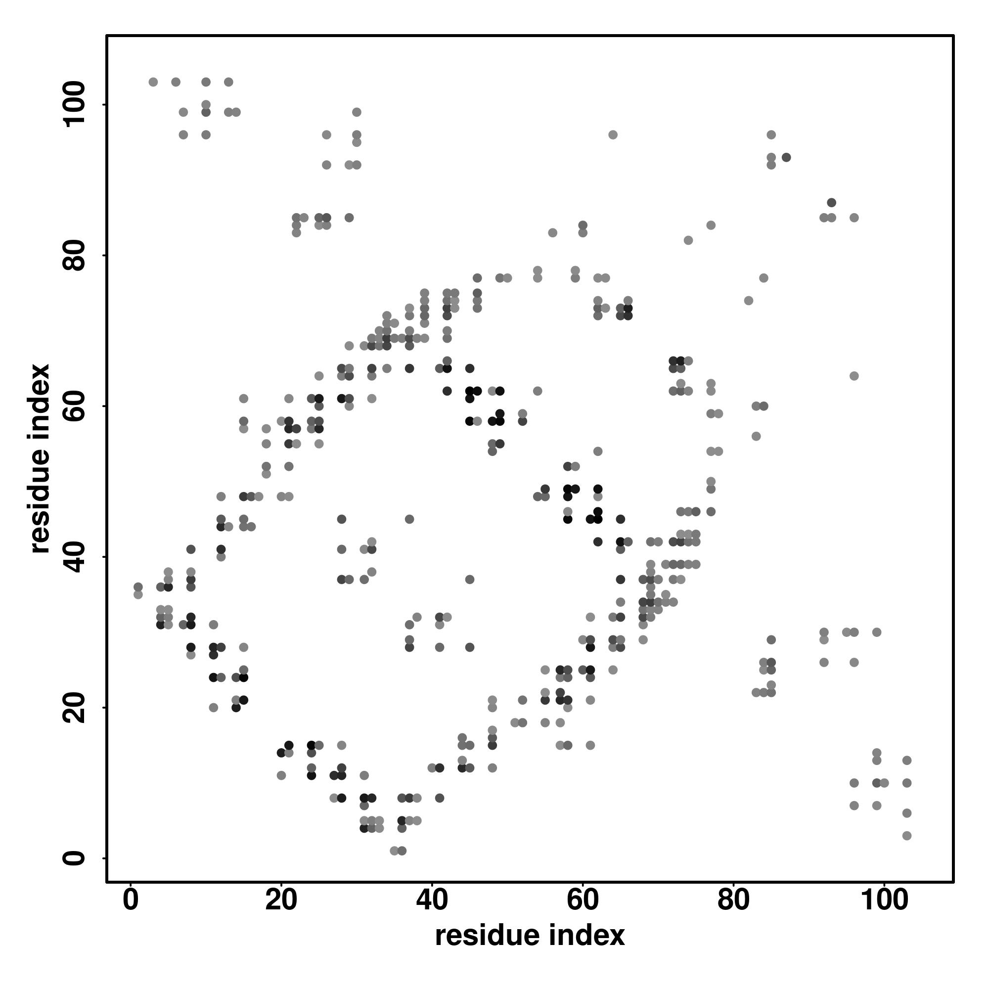For the contact map, each dot represents a residue pair with predicted contact,