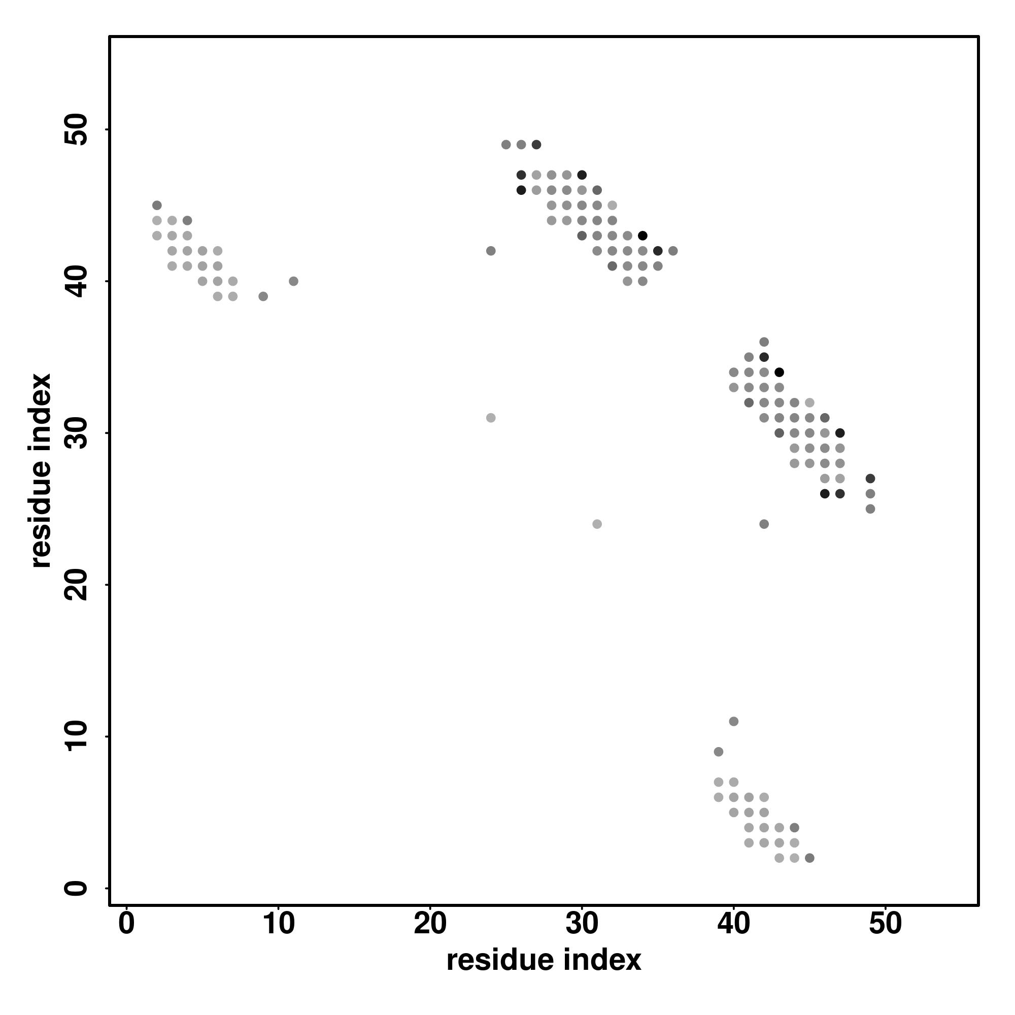 For the contact map, each dot represents a residue pair with predicted contact,