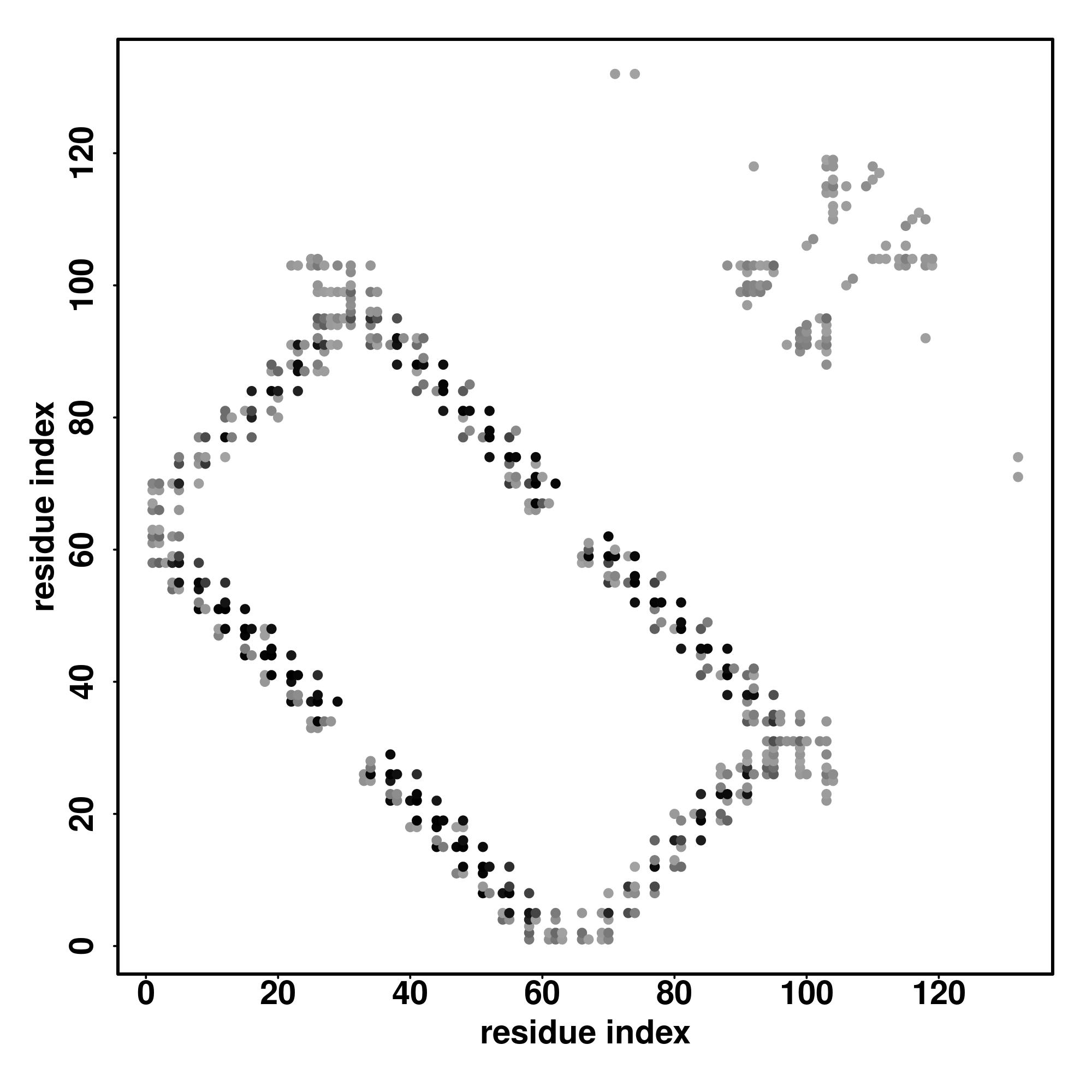 For the contact map, each dot represents a residue pair with predicted contact,