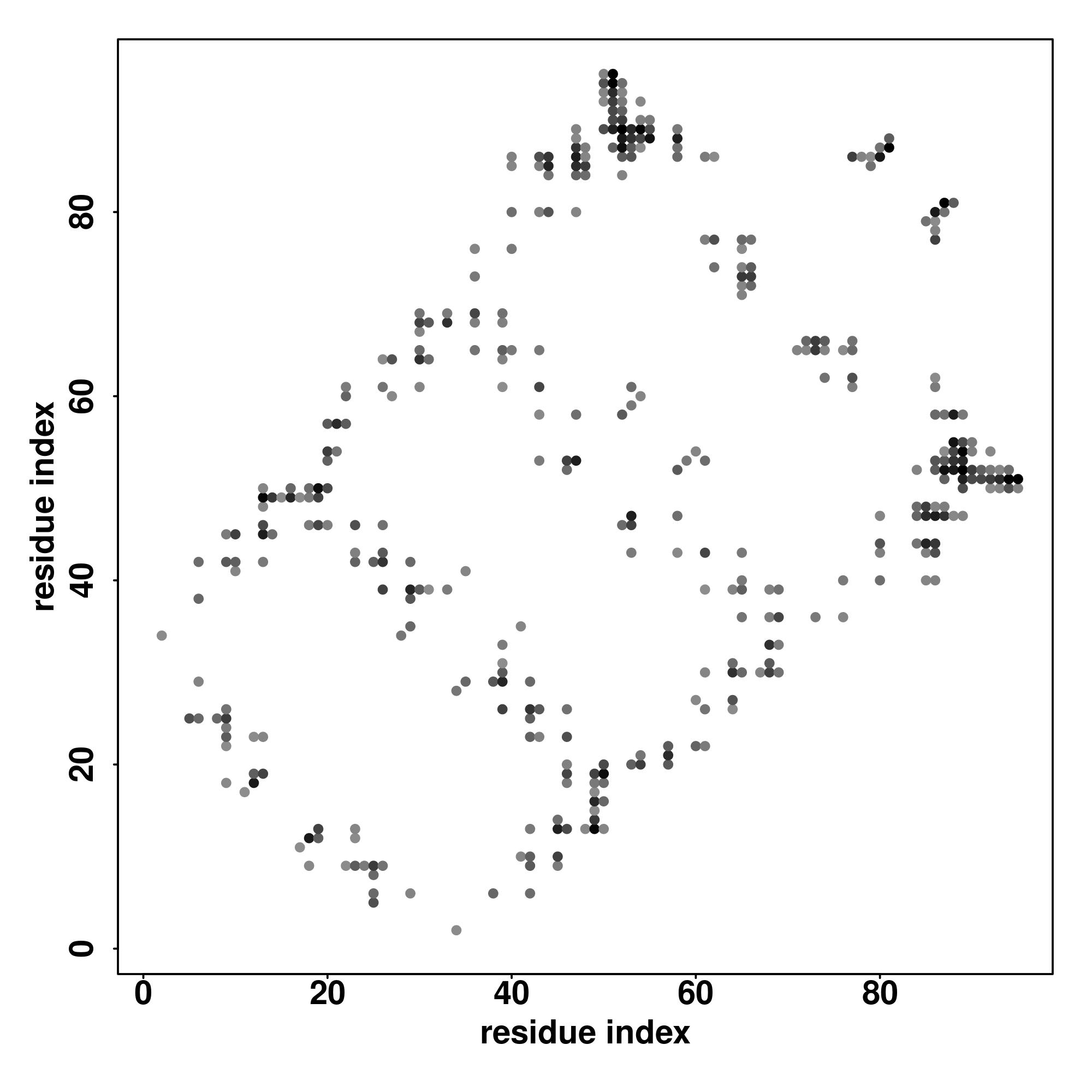 For the contact map, each dot represents a residue pair with predicted contact,