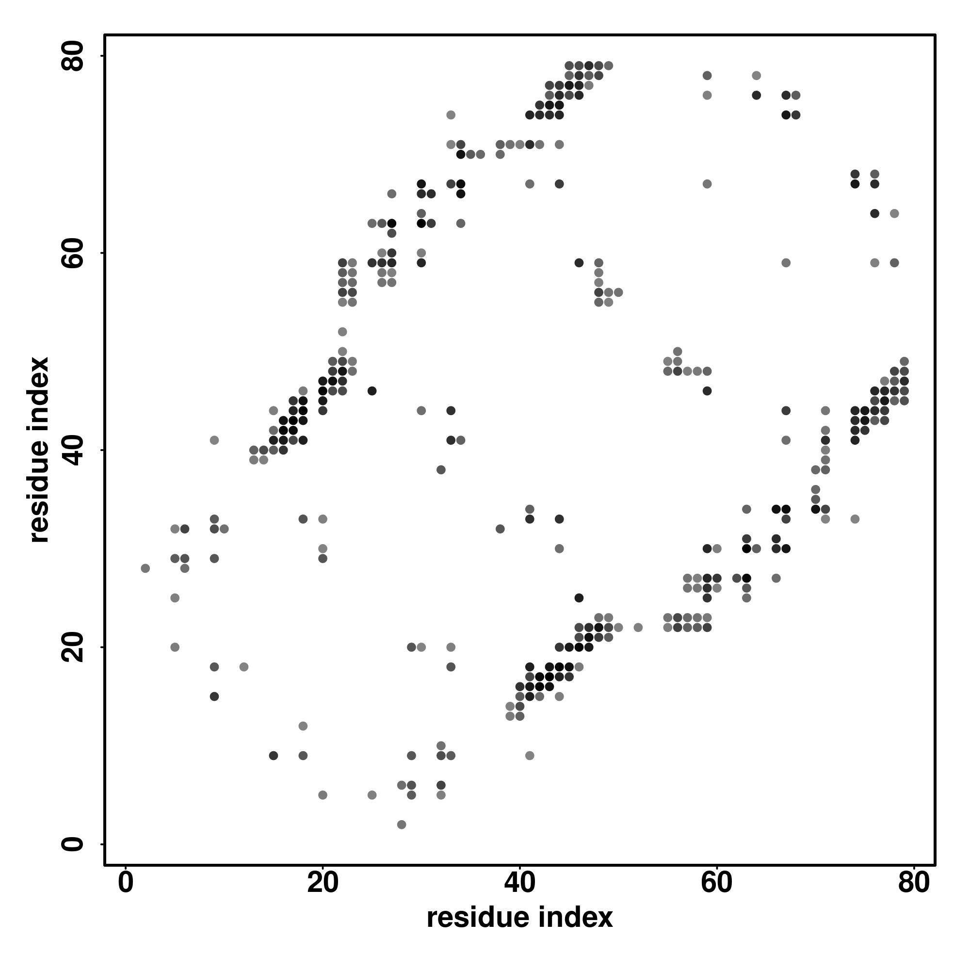For the contact map, each dot represents a residue pair with predicted contact,