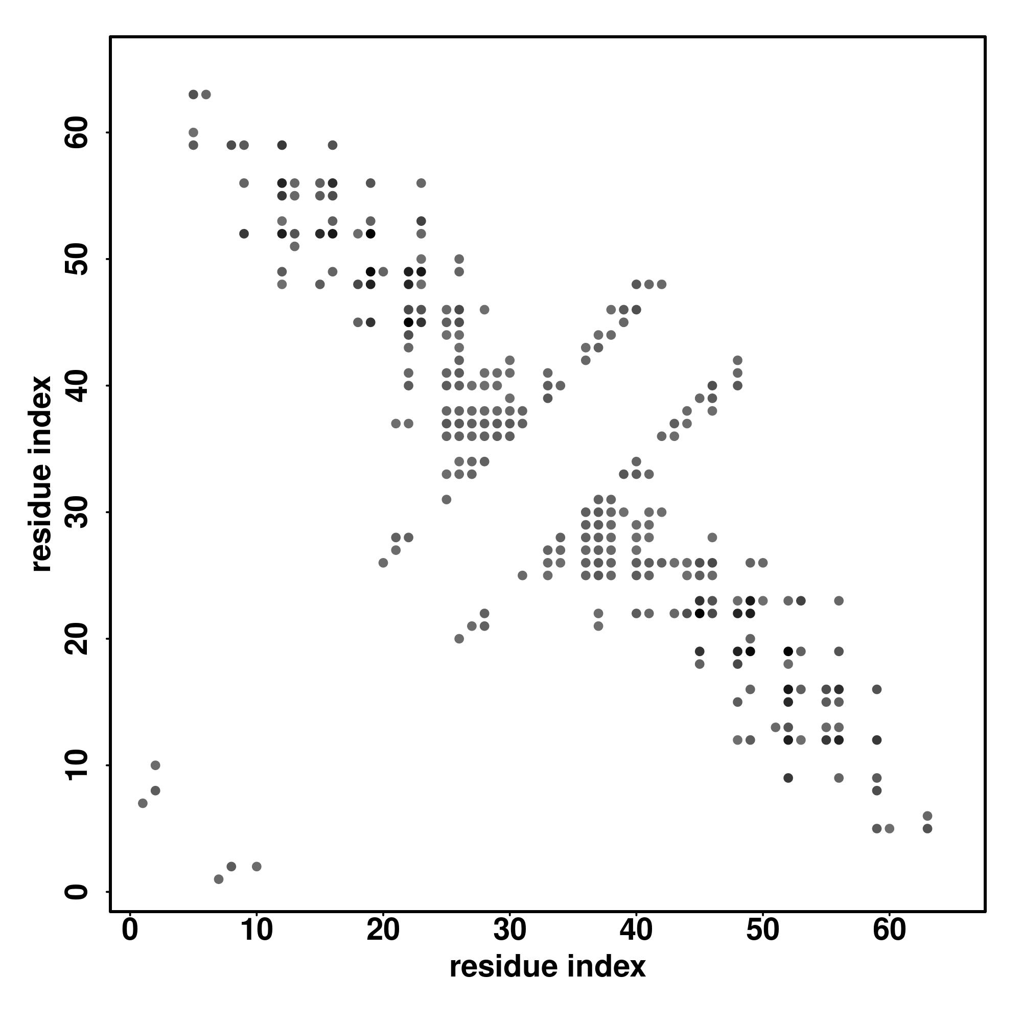 For the contact map, each dot represents a residue pair with predicted contact,