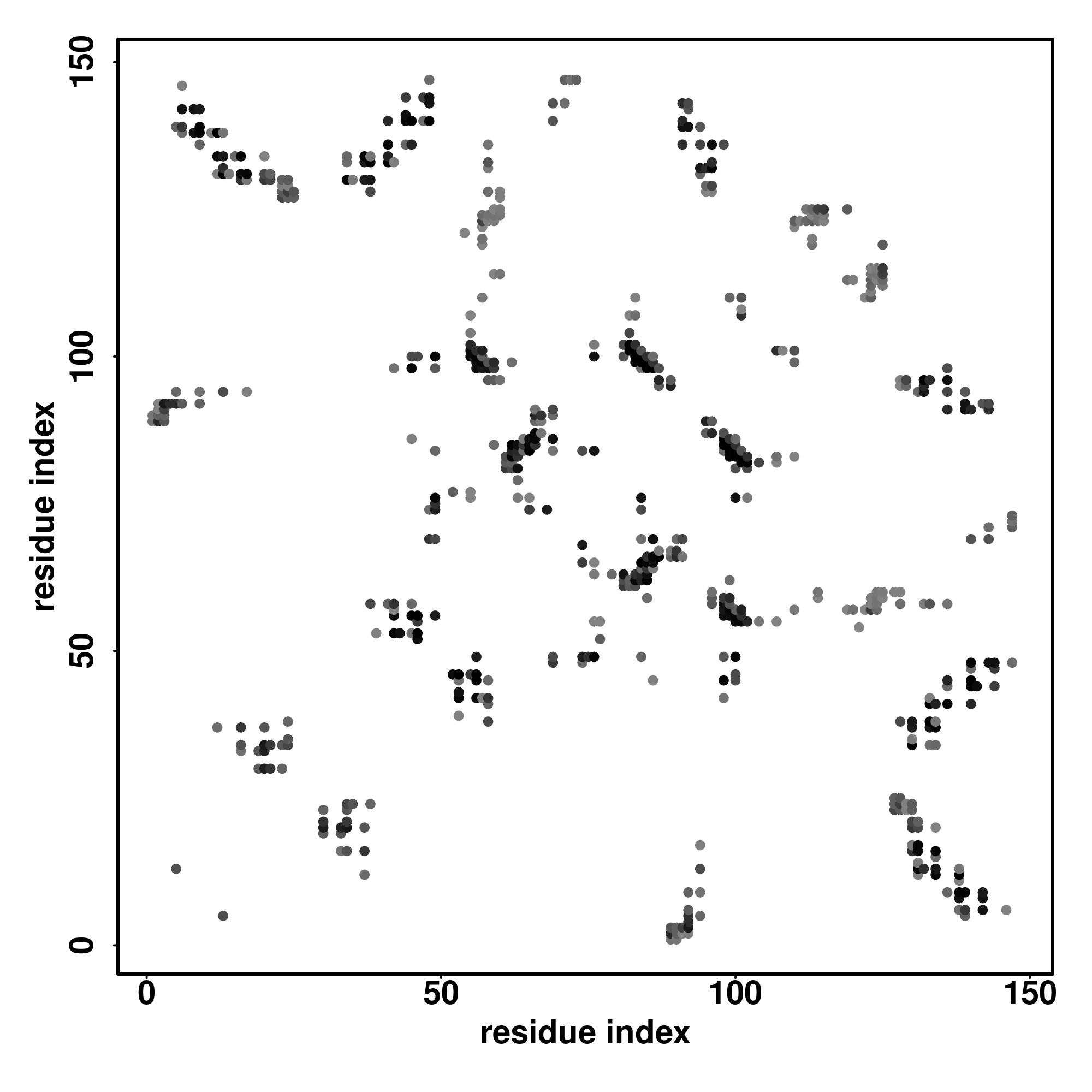 For the contact map, each dot represents a residue pair with predicted contact,