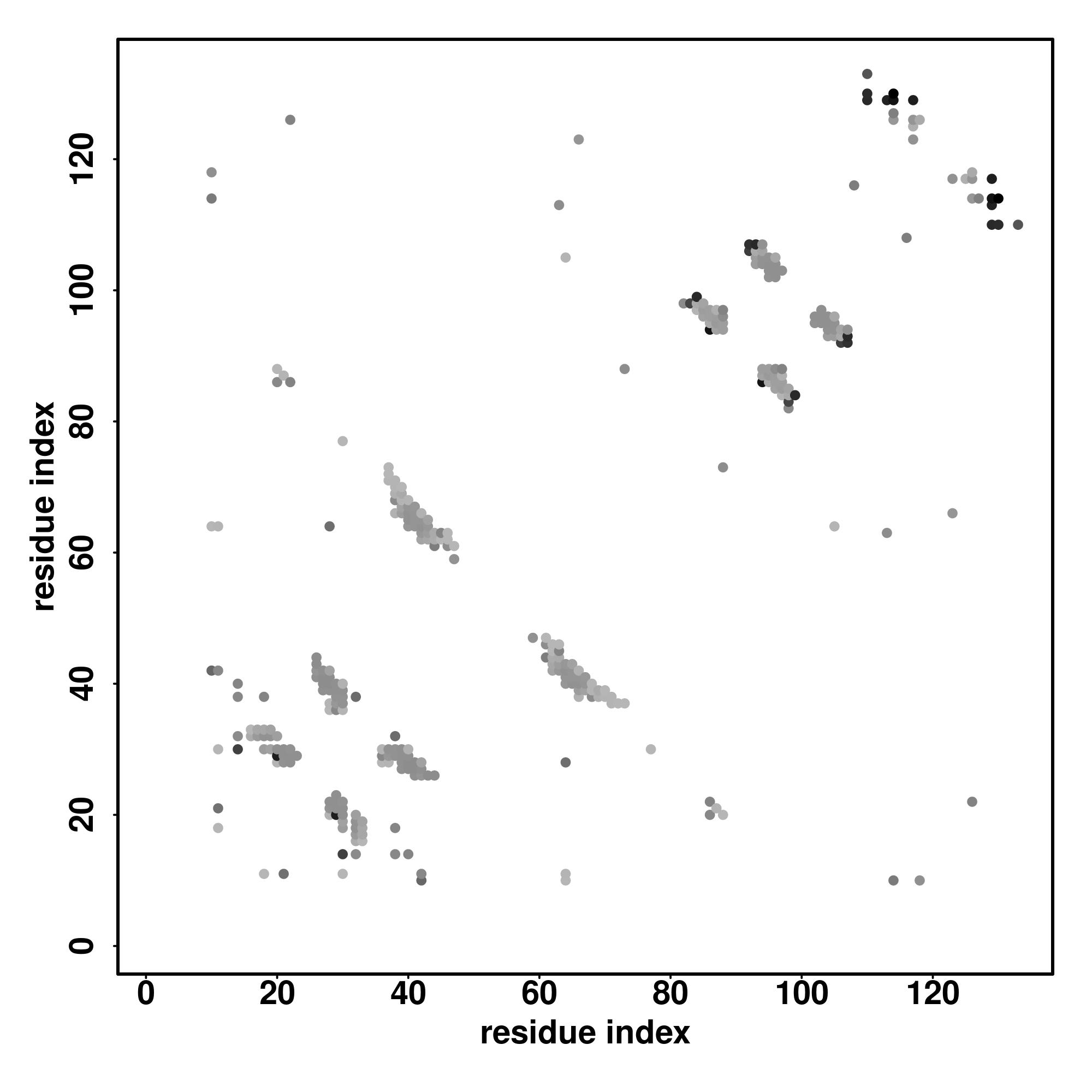 For the contact map, each dot represents a residue pair with predicted contact,