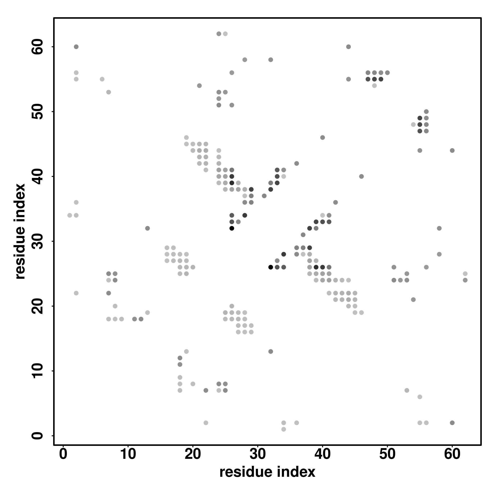 For the contact map, each dot represents a residue pair with predicted contact,