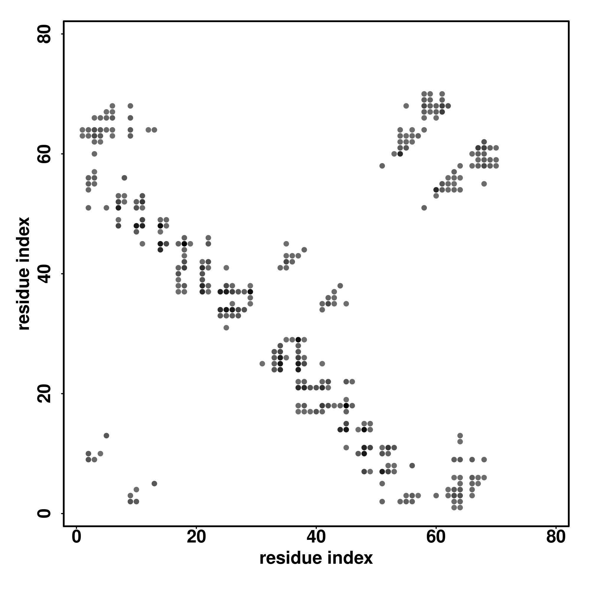 For the contact map, each dot represents a residue pair with predicted contact,