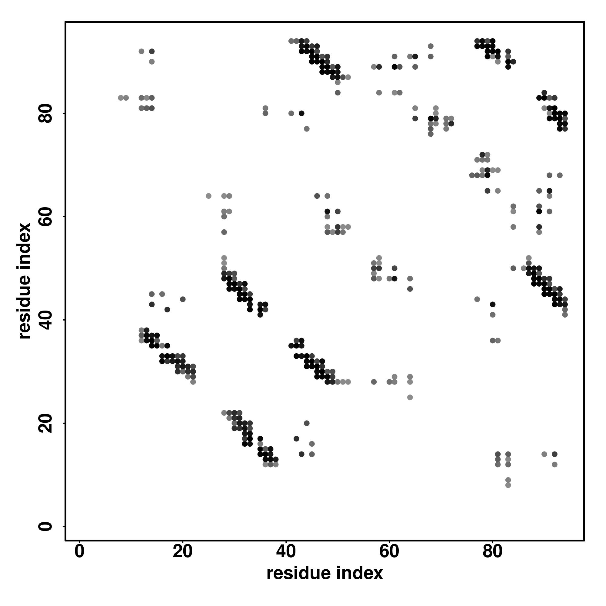 For the contact map, each dot represents a residue pair with predicted contact,