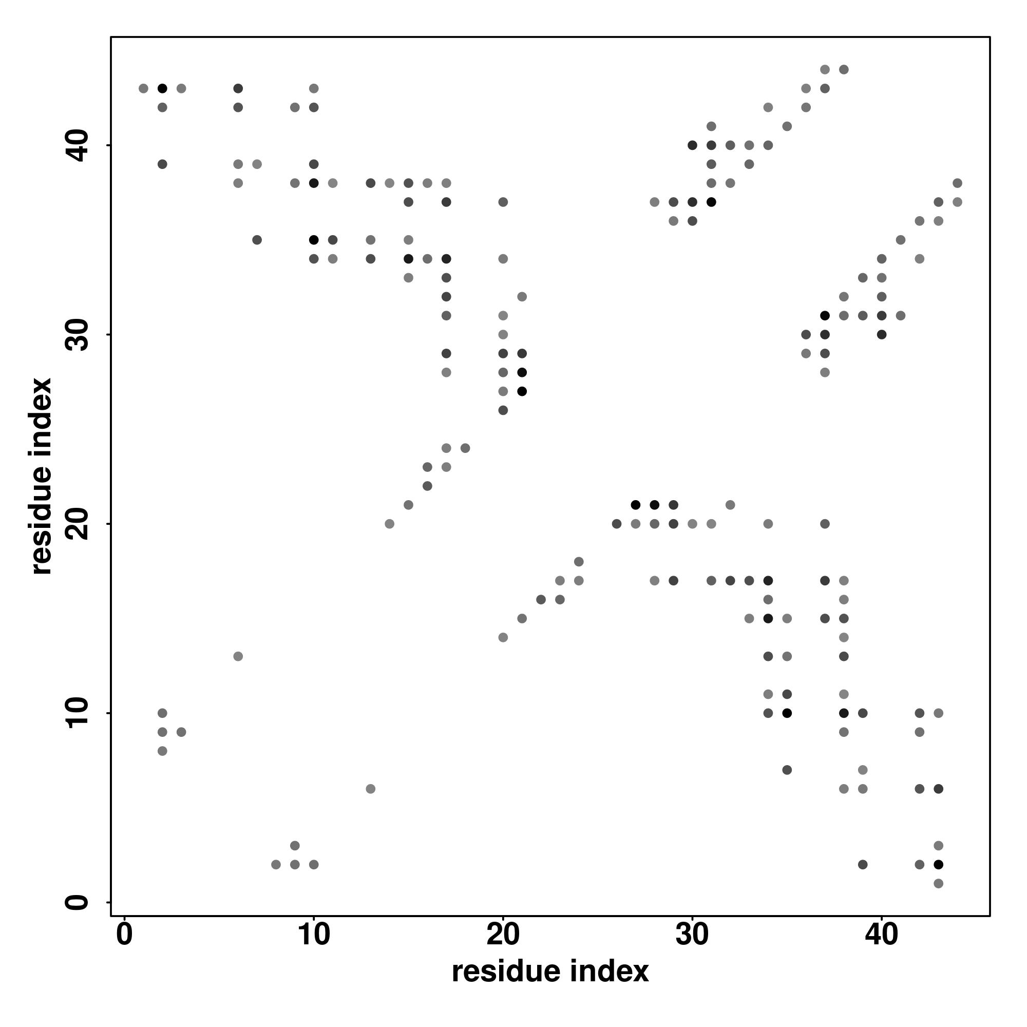 For the contact map, each dot represents a residue pair with predicted contact,