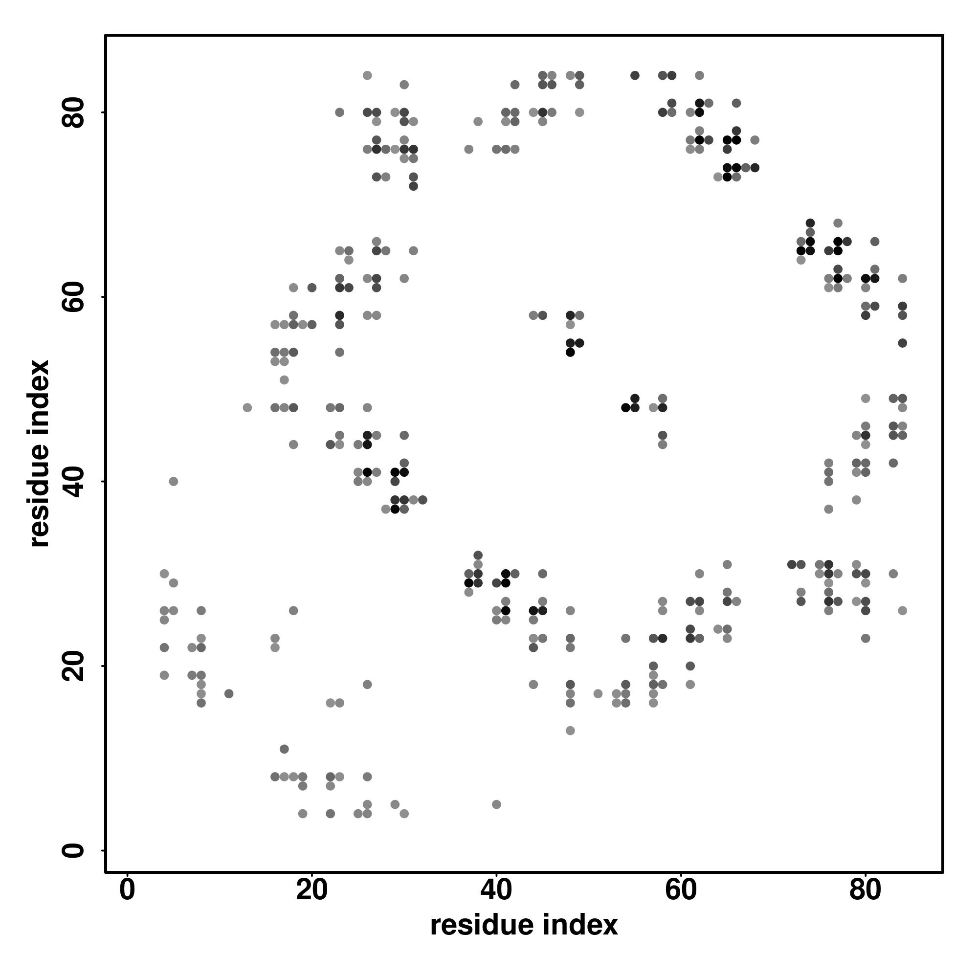 For the contact map, each dot represents a residue pair with predicted contact,