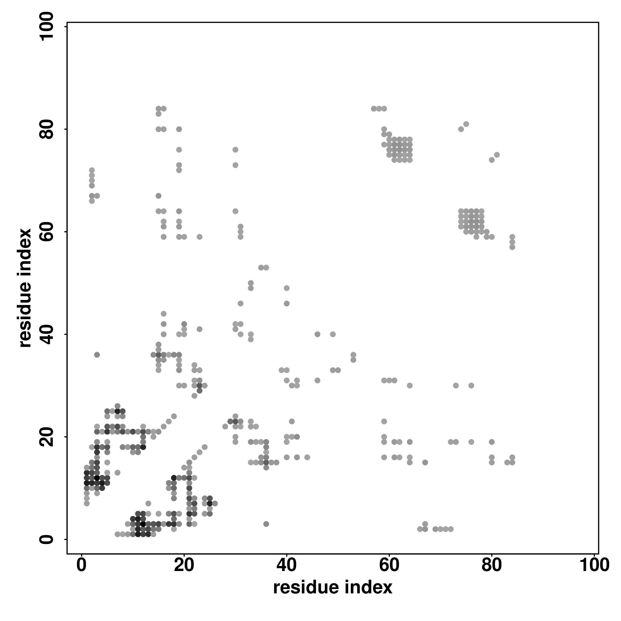 For the contact map, each dot represents a residue pair with predicted contact,