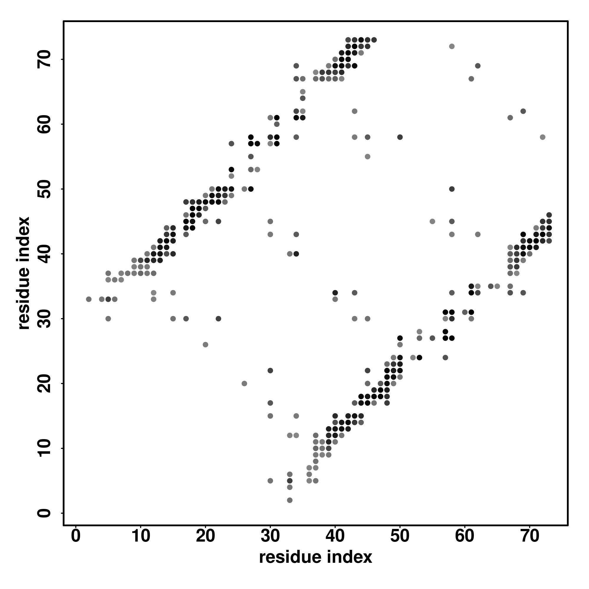 For the contact map, each dot represents a residue pair with predicted contact,
