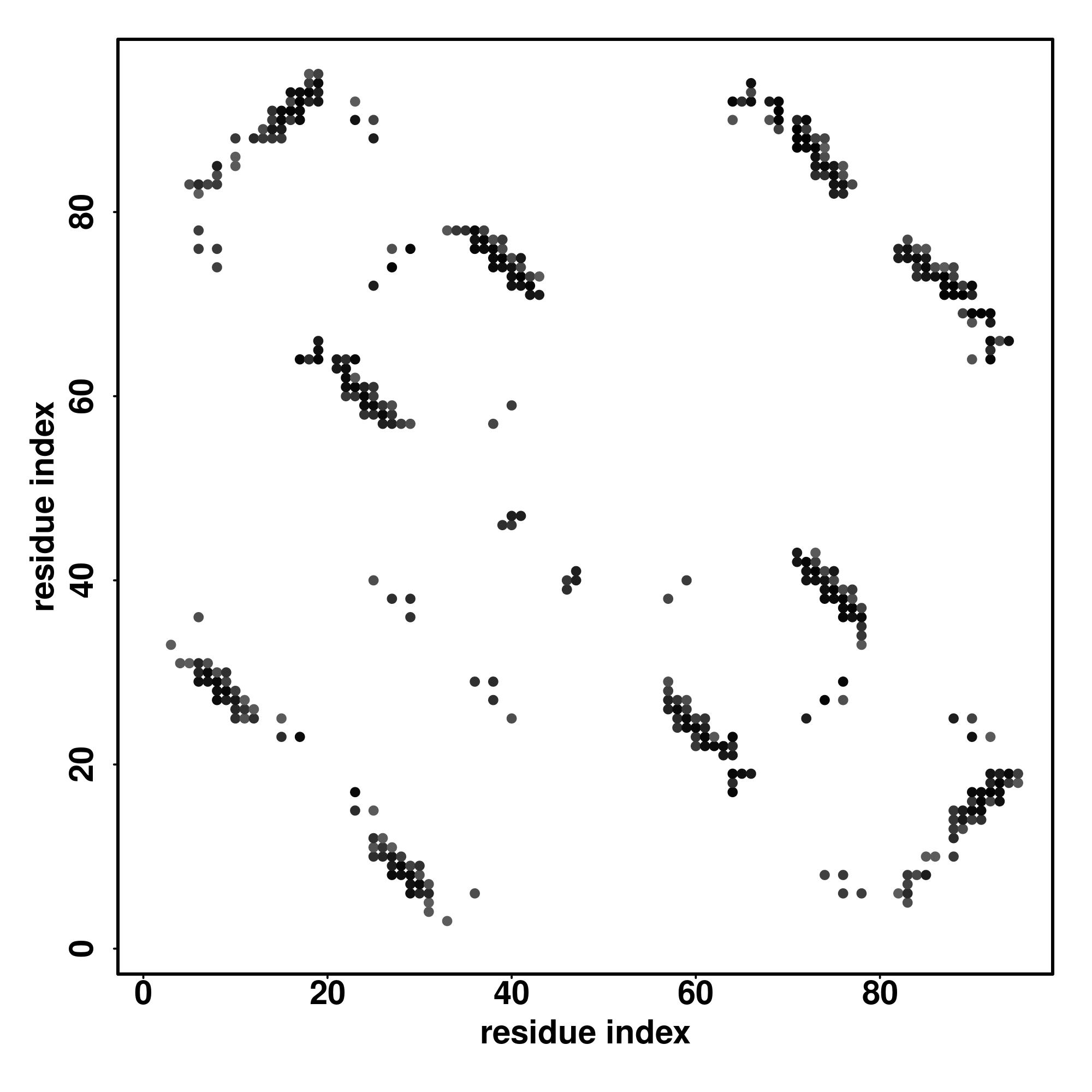 For the contact map, each dot represents a residue pair with predicted contact,