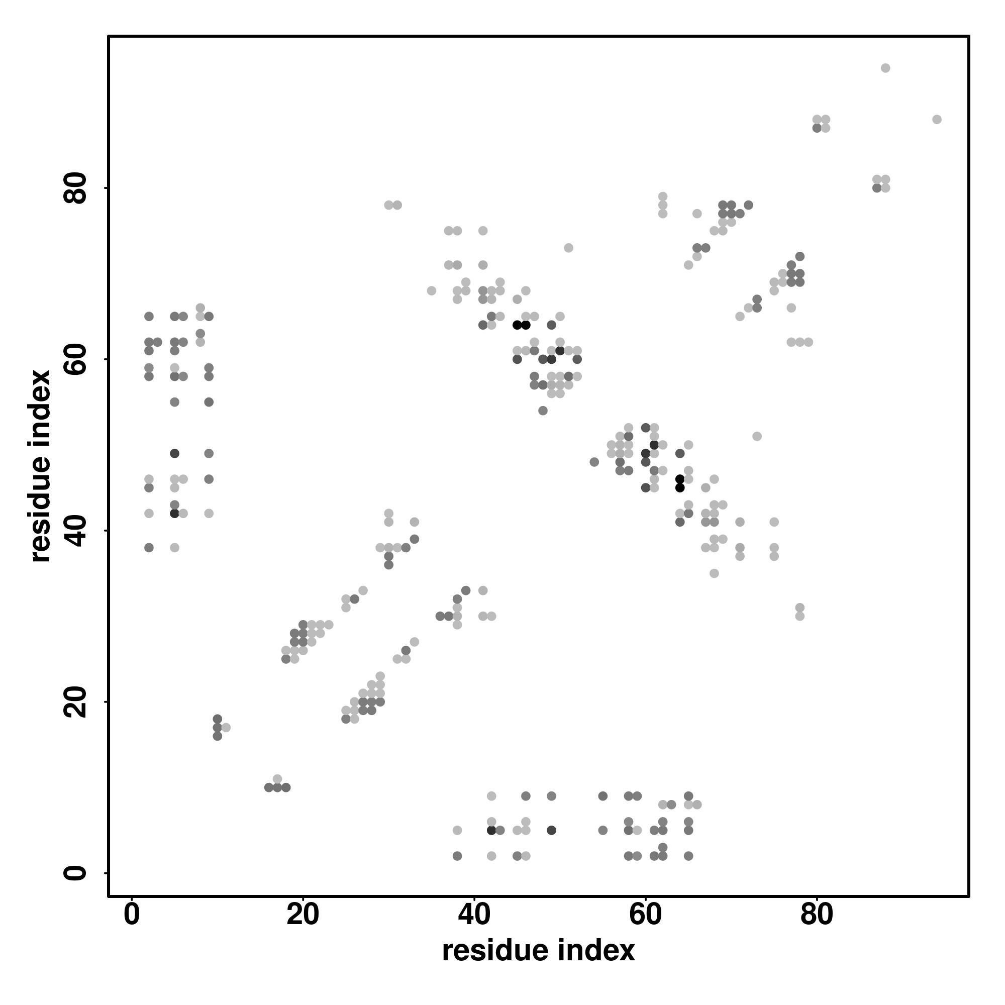 For the contact map, each dot represents a residue pair with predicted contact,