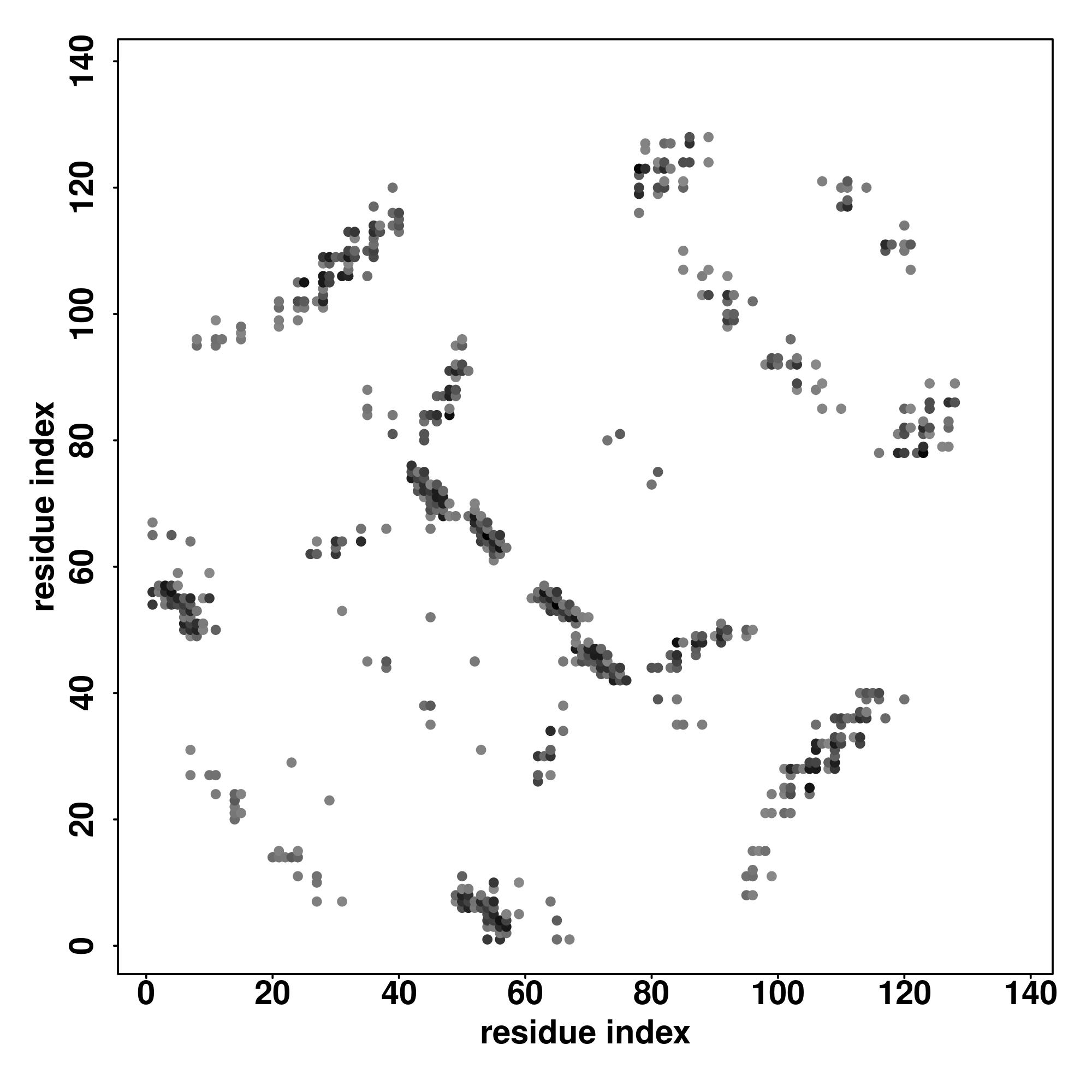 For the contact map, each dot represents a residue pair with predicted contact,