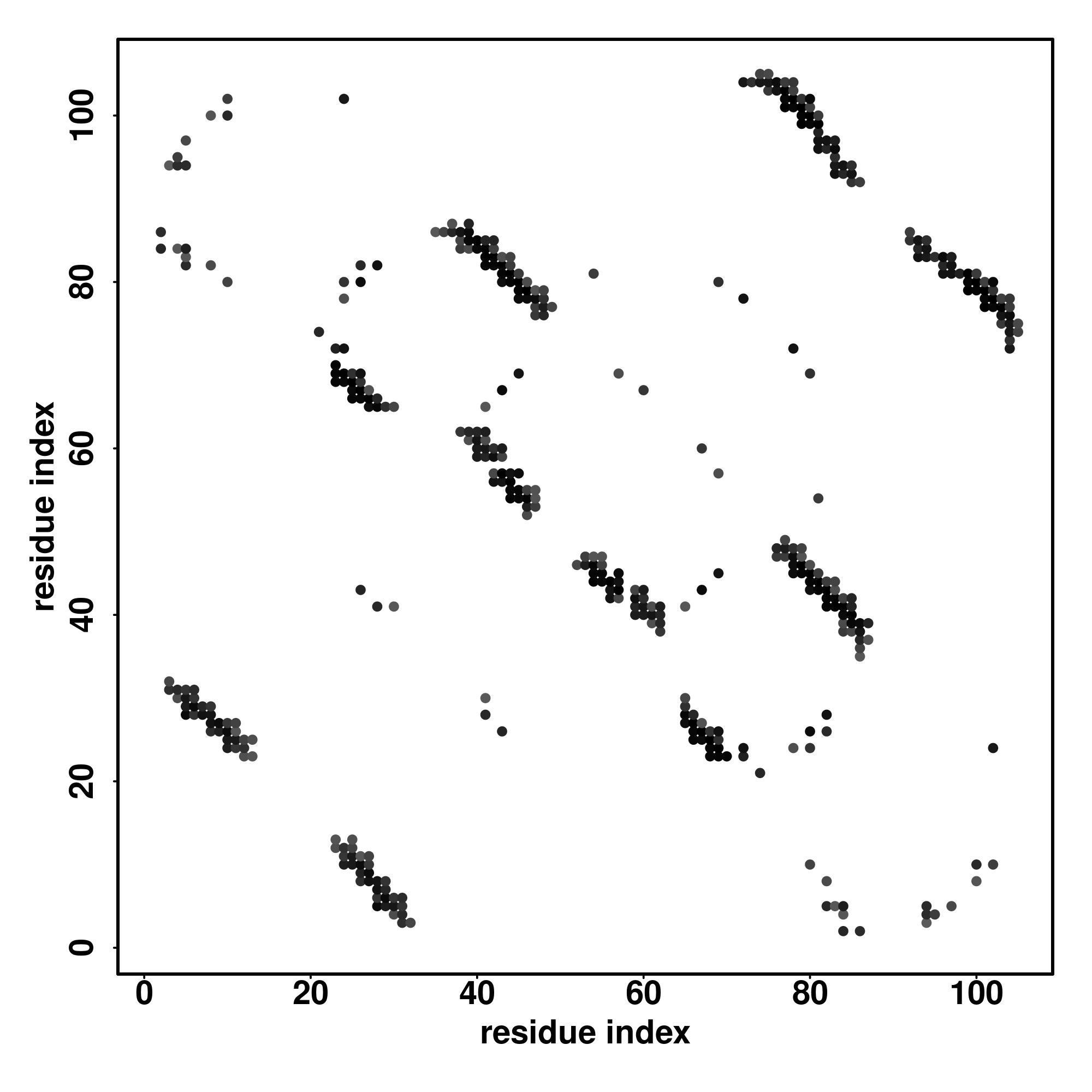 For the contact map, each dot represents a residue pair with predicted contact,