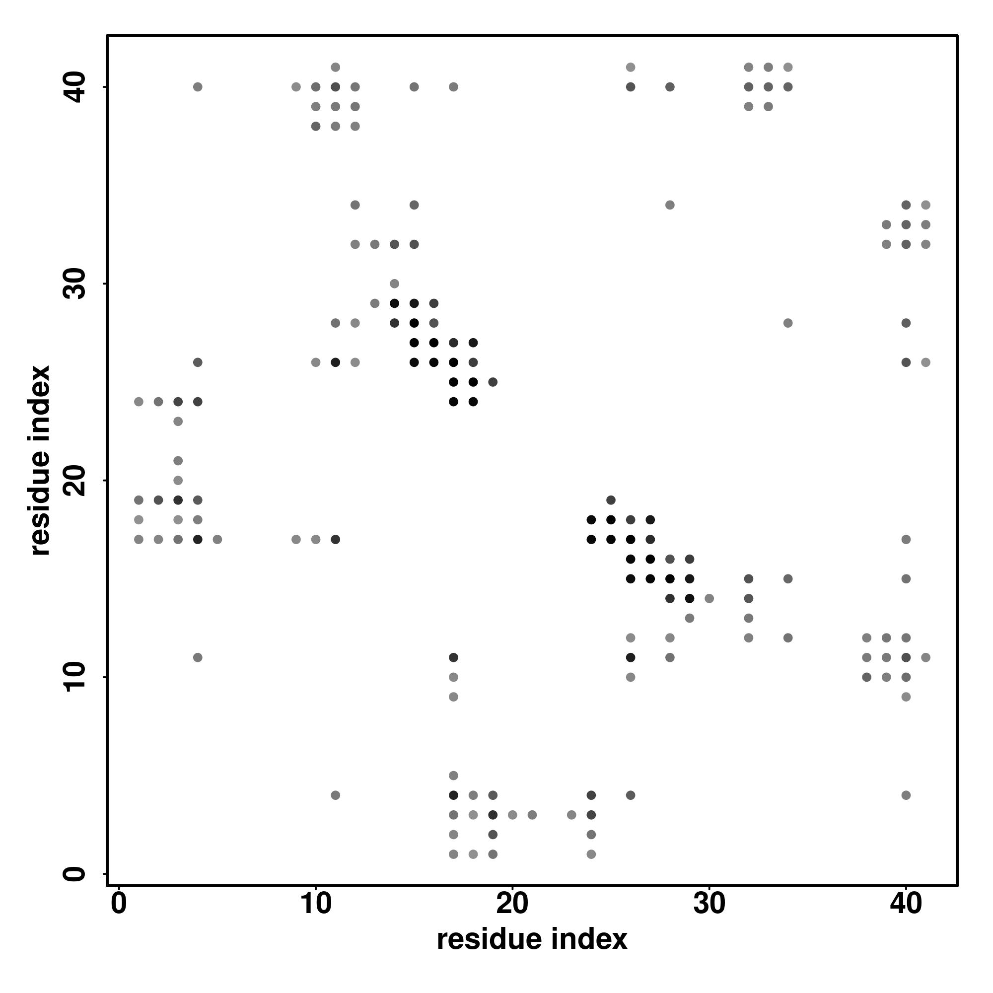 For the contact map, each dot represents a residue pair with predicted contact,