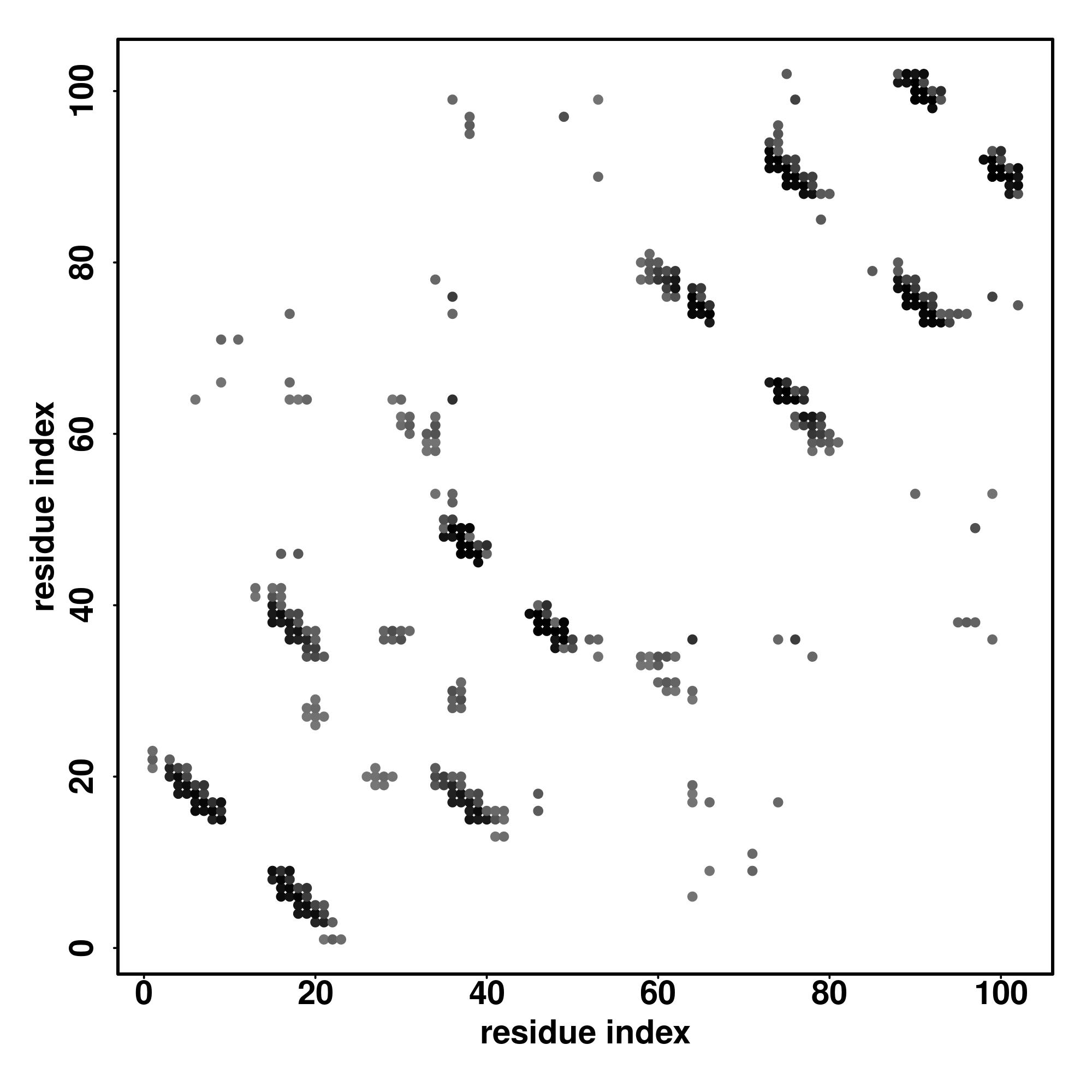 For the contact map, each dot represents a residue pair with predicted contact,